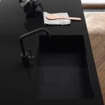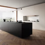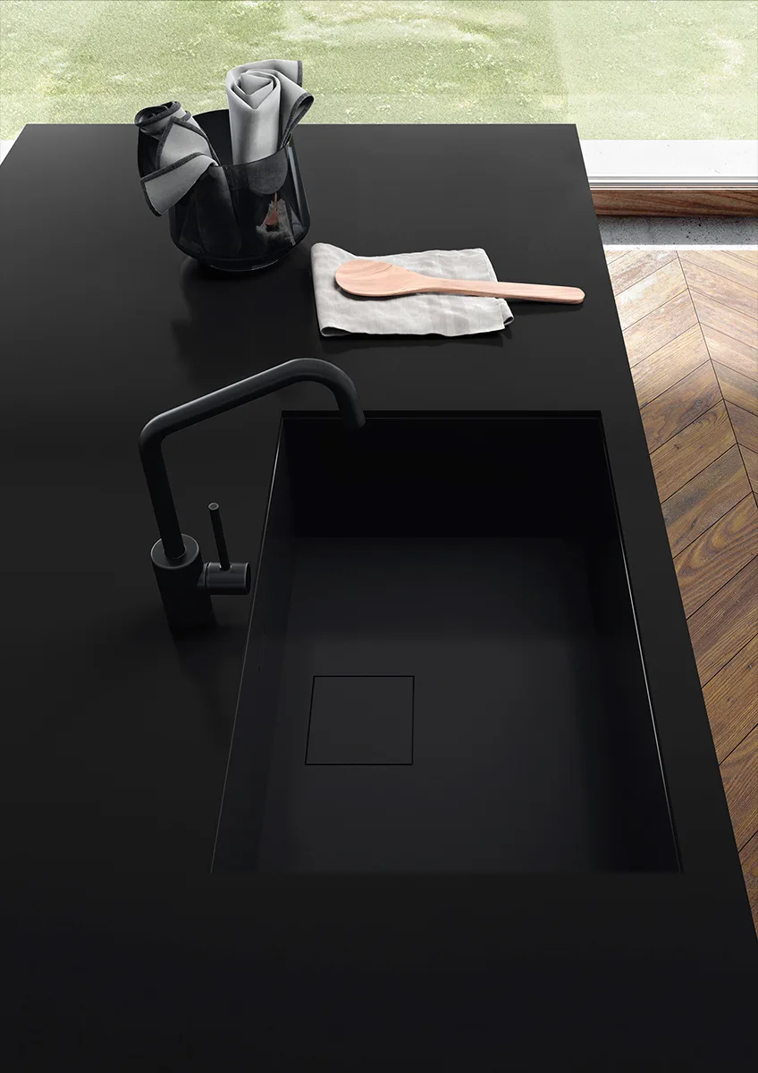 Absolute Black van Infinity Surfaces is een porseleinen grootformaat plaat met een pure, diepe zwarte kleur zonder schaduw of variatie, speciaal ontworpen voor een monochrome en minimalistische uitstraling. Deze collectie straalt intense elegantie en krachtige eenvoud uit, waardoor het een ideale keuze is voor moderne, strakke interieurs, luxe keukens of opvallende accentwanden met sterke contrastwerking. Dankzij de hoogwaardige porseleinen samenstelling combineert Absolute Black een visuele impact met duurzaamheid, onderhoudsgemak en uitstekende technische prestaties, zoals weerstand tegen krassen, hitte en vlekken. Het materiaal is perfect toepasbaar voor werkbladen, vloeren, wanden en meubels in zowel residentiële als commerciële projecten.