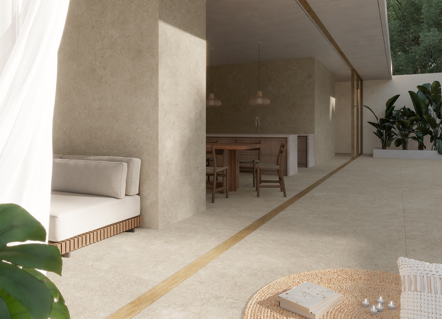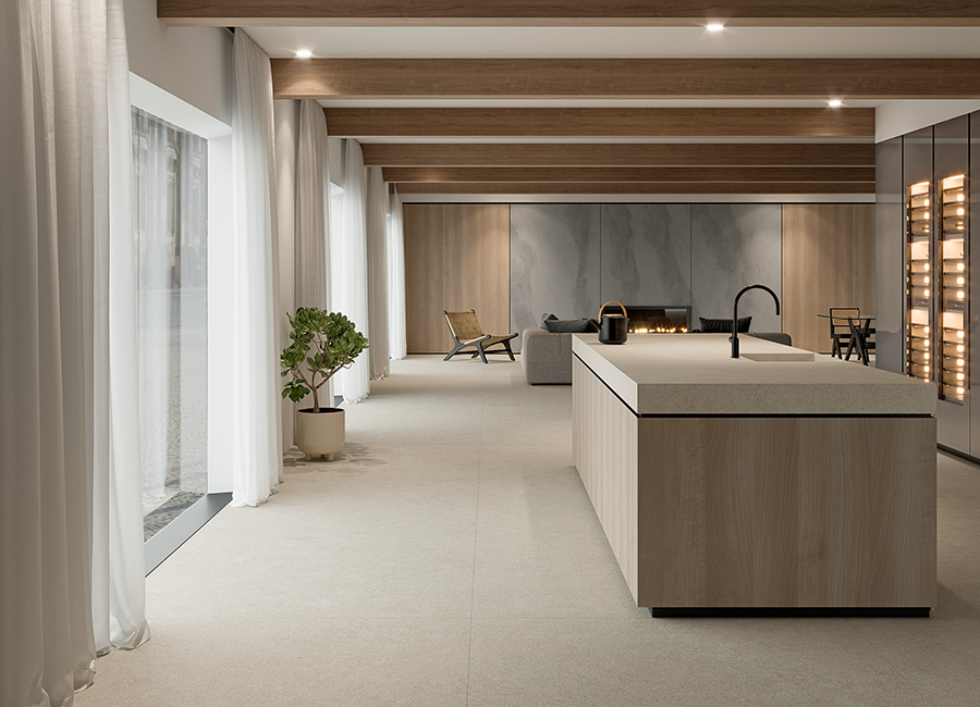 Ananda is een oppervlaktecollectie van Inalco binnen hun MDi-serie, ontworpen om de vergrijzing van tijd en de rust van natuurlijke elementen te weerspiegelen. Het imiteert zandsteen met een zachte textuur die het effect van lichte erosie oproept — subtiel en organisch in uitstraling. De afwerking “Digital Texture” (DT) of “DT Grip+” geeft het materiaal tactiele kwaliteiten; het voelt licht geruwd aan door een zandstraal-achtig oppervlak dat toch elegant oogt. De kleur is “Blanco”, een heldere witte tint die zich goed leent voor minimalistische en serene toepassingen. De platen zijn beschikbaar in meerdere standaardformaten (bijv. 1600×3200 mm, 1000×3000 mm, etc.) en in verschillende diktes (4 mm tot 20 mm), wat flexibiliteit biedt voor verschillende toepassingen, zoals werkbladen, wandbekleding of vloeren. Ananda straalt eenvoud, rust en verfijning uit, met een design dat eenvoud viert zonder in te boeten aan visuele aantrekkingskracht. Met zijn subtiele reliëf en neutrale toon biedt het een veelzijdige basis voor interieurontwerp, terwijl het een gevoel van tijdloosheid en sereniteit brengt.
