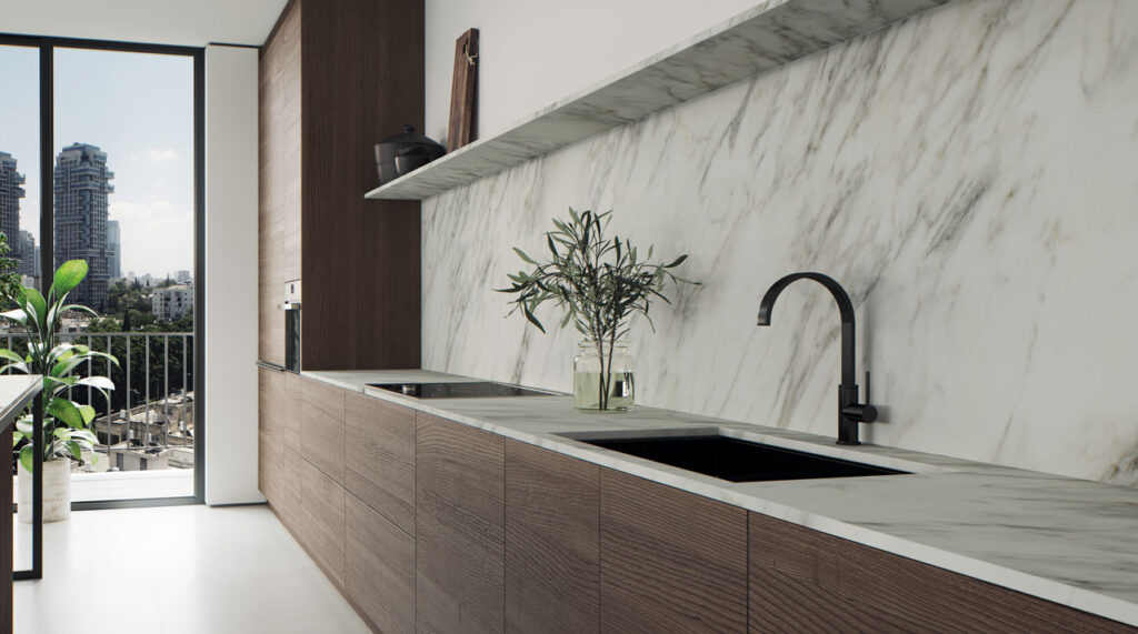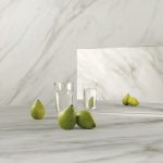 Dit elegante oppervlak heeft een zachte ivoorwitte basis die wordt verzacht door vloeiende grijze aders die geleidelijk in de steen lijken op te lossen. Subtiele lagen in gedempt groen en warm geel voegen een kristallijn accent toe en geven het geheel een authentieke, minerale uitstraling. De combinatie van deze nuances creëert een natuurlijke diepte met de licht troebele transparantie die kenmerkend is voor marmer. Dankzij de Honed-afwerking krijgt het oppervlak een matte, zijdezachte look die rust en verfijning uitstraalt. Een ideale keuze voor interieurs waarin natuurlijke elegantie en ingetogen luxe samenkomen.