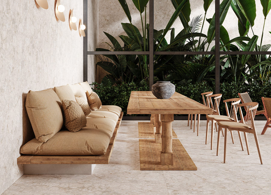 Atria is een elegante en verfijnde oppervlaktecollectie binnen de MDi-reeks van Inalco. Deze collectie is geïnspireerd op de klassieke binnenhoven (atriums) van Romeinse villa’s, waarbij het ontwerp een geraffineerd gevoel van historie en verfijning oproept. De basiskleur is een warme crème (“Crema”), subtiel doorspekt met lichte, zachte bruine aders die het uiterlijk van natuurlijk marmer of steen nabootsen. De afwerking is DT+ (Digital Texture Plus), wat inhoudt dat het oppervlak een tastbare textuur heeft die de esthetiek combineert met een gevoel van natuurlijke diepte. De platen zijn verkrijgbaar in formaten zoals 1280×3200 mm, 1200×3000 mm en vierkante 1200×1200 mm, en in diktes van 8 en 12 mm — dit maakt ze geschikt voor uiteenlopende toepassingen zoals werkbladen, wandbekleding of vloeren. Atria presenteert zichzelf als een tijdloze keuze: een neutraal, toch karaktervol oppervlak dat balans brengt tussen elegantie, duurzaamheid en visuele subtiliteit. Dankzij het gebruik van MDi-technologie combineert het esthetiek met technische prestaties en milieuoverwegingen.