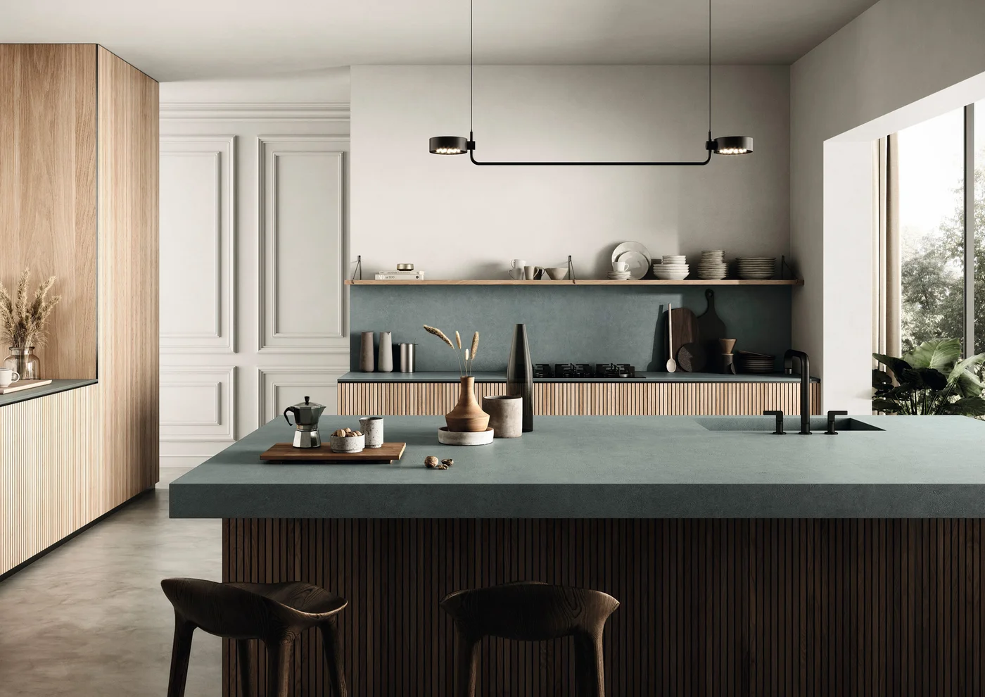 SapienStone Balance Azure is een hoogwaardige Italiaanse porseleinen grootformaat plaat met een serene grijs-blauwe (azuur) tint, geïnspireerd op de rustige energie van de lucht en natuurlijke kleureffecten. De homogeen gekleurde, monochrome keramische oppervlakte biedt een elegante, rustgevende basis die prachtig past bij moderne, minimalistische en tijdloze interieurontwerpen. Met een formaat van 320×160 cm en een natural finish is Balance Azure uitermate geschikt voor werkbladen, vloeren, wanden en meubeloppervlakken. Dankzij de premium porseleinen samenstelling levert het materiaal duurzaamheid, onderhoudsgemak en uitstekende weerstand tegen krassen, hitte en vlekken, waardoor het functioneel én stijlvol is in veeleisende toepassingen.