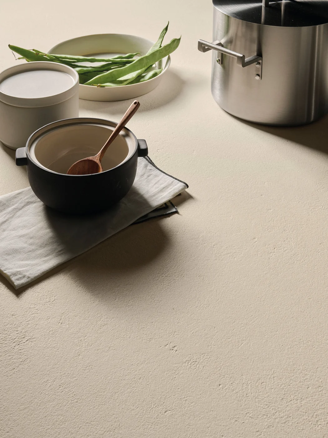 Sapienstone Balance Ivory is een porseleinen grootformaat plaat met een homogene, warme ivoorkleur geïnspireerd op de puurheid van klei, waardoor het licht zacht wordt verspreid en een serene, uitnodigende sfeer creëert. Deze slab is onderdeel van de Balance-collectie en biedt een rustige, natuurlijke basis die elegantie toevoegt aan moderne en tijdloze interieurontwerpen. Dankzij de premium porseleinen samenstelling is Balance Ivory slijtvast, kras-, hitte- en vlekbestendig en eenvoudig in onderhoud, waardoor het geschikt is voor intensief dagelijks gebruik. Het materiaal is ideaal voor werkbladen, vloeren, wanden en meubels in zowel residentiële als commerciële projecten.