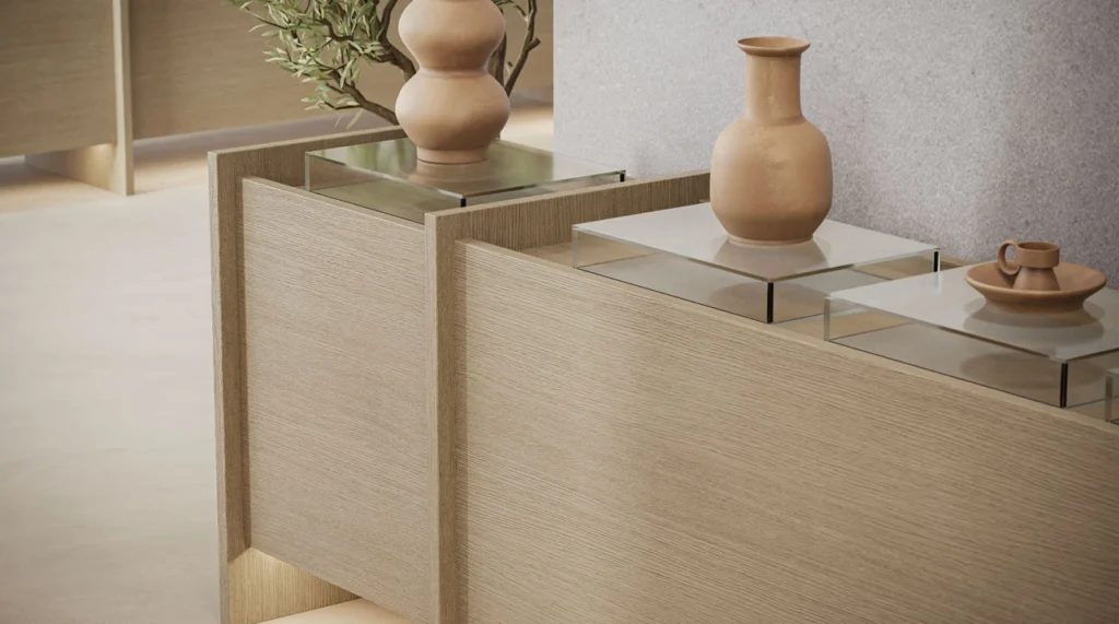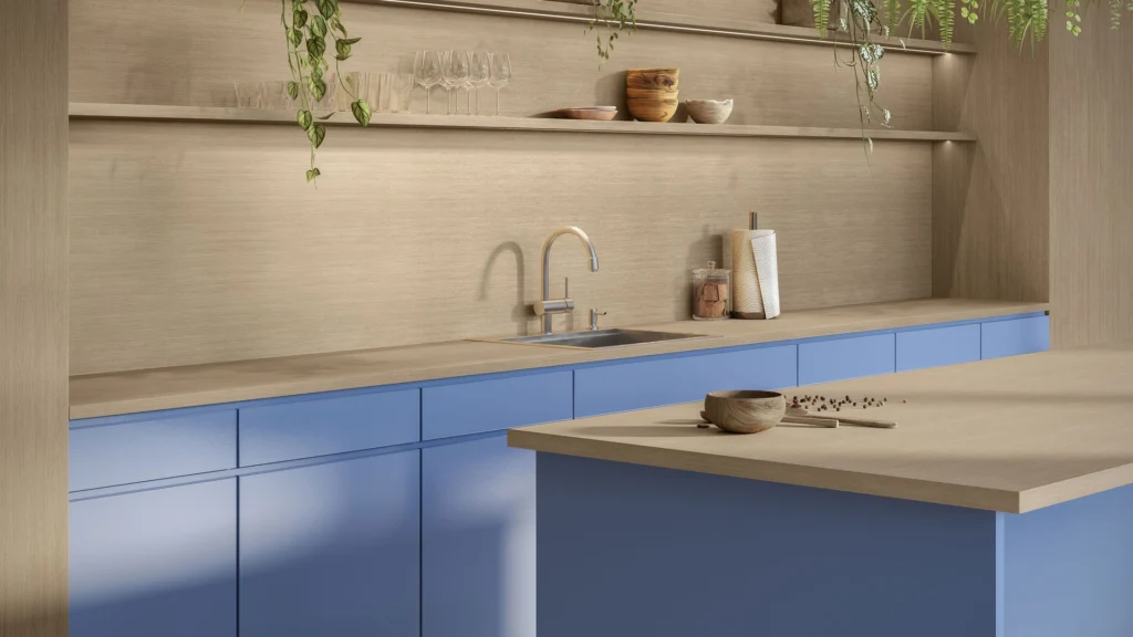 De Caesarstone 603 Birchhaven Wood omarmt de natuurlijke schoonheid van eikenhout met een gelijkmatig verdeeld nerfpatroon in warme bruintinten en subtiel lichtere accenten, die samen een gevoel van rust en natuurlijke warmte geven aan je interieur. De korrelige textuur, versterkt door speciale reliëfinkteffecten, zorgt voor een tactiele dimensie die het oppervlak tot leven brengt en uitnodigend aanvoelt onder aanraking. Birchhaven Wood creëert een warme, uitnodigende uitstraling die perfect past bij zowel klassieke als moderne woonruimtes, waardoor een gevoel van tijdloze elegantie en natuurlijke charme ontstaat.