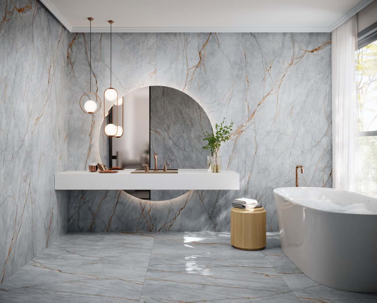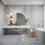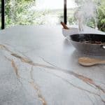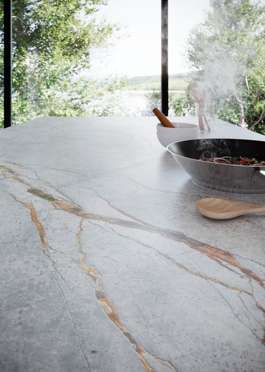 De Blue Roma technical stone-serie is geïnspireerd op een bijzondere natuursteen die wordt gewonnen in Brazilië. Deze zeldzame en elegante steensoort staat wereldwijd bekend om zijn opvallende blauwgrijze basistint, die een ingetogen maar tegelijk krachtige uitstraling heeft. Over het oppervlak lopen prachtige, koperkleurige aders die zich op organische wijze door de steen bewegen. Deze warme, metaalachtige lijnen creëren een verfijnd contrast met de koele ondergrond, waardoor een diep en dynamisch geheel ontstaat.