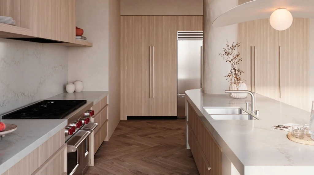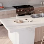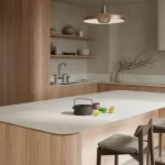 De Caesarstone 8100 Calacatta Lacebound straalt zachtheid en verfijning uit met een ivoorkleurige basis die uitnodigend en warm aanvoelt. Door het oppervlak lopen taupe en lichtgrijze aders die gracieus vervagen en zorgen voor een organische, natuurlijke flow. Verfijnde accenten van subtiel goud geven extra diepte en elegantie, waardoor het blad een luxe uitstraling krijgt zonder te overheersen. Dit tijdloze ontwerp combineert klassiek marmerdesign met moderne nuances, wat bijdraagt aan een gevoel van rust en stijlvolle harmonie in elke ruimte. Lacebound past perfect bij zowel zachte neutrale paletten als rijke materialen, en tilt elk interieur naar een hoger niveau.