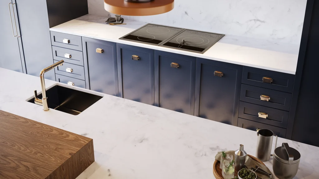 De Caesarstone 914 Carrara Ice opent met een heldere witte basis die een gevoel van ruimte en elegantie creëert. Door het oppervlak lopen delicate grijze aders, subtiel en verfijnd, geïnspireerd op het klassieke Carrara-marmer, maar met een moderne, frisse uitstraling. Dit zachte lijnenspel geeft het blad karakter zonder te overheersen en zorgt voor een rustige, prestigieuze sfeer in elke ruimte. Carrara Ice brengt natuurlijke verfijning in je interieur en past moeiteloos bij zowel strakke, eigentijdse ontwerpen als warme, tijdloze omgevingen. Het resultaat is een elegant oppervlak dat luxe en sereniteit combineert.