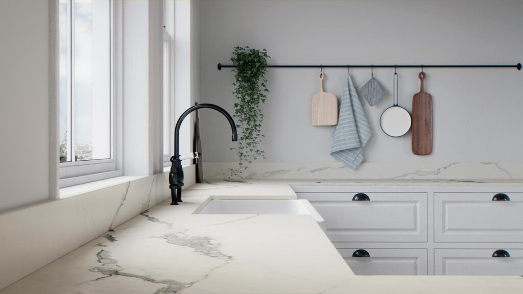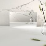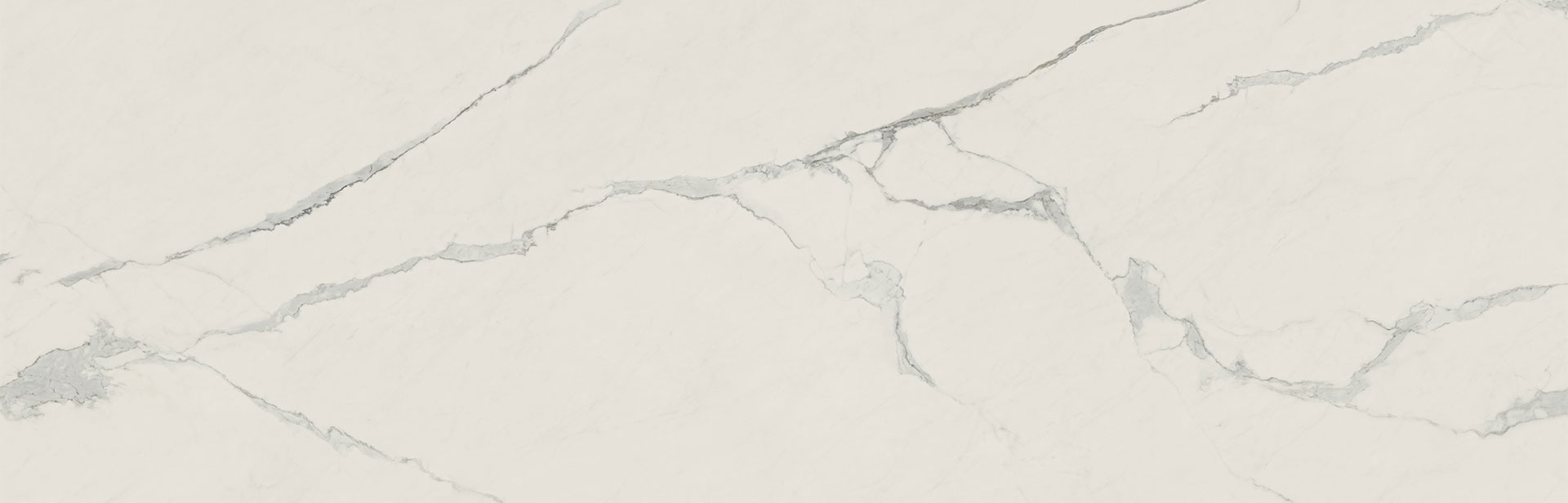 Deze hoogwaardige steen kenmerkt zich door een zuiver witte basis die wordt versterkt door uitgesproken lichtgrijze aders in uiteenlopende diktes en intensiteiten. Krachtige, vloeiende lijnen met diepere grijstinten creëren een dramatisch effect, terwijl fijnere aders subtiel in de achtergrond zijn verwerkt. Deze gelaagdheid zorgt voor een indrukwekkend spel van contrast en nuance, waardoor het oppervlak een sterke visuele diepte krijgt. Het ontwerp trekt direct de aandacht zonder overweldigend te zijn en straalt luxe, karakter en verfijning uit. Ideaal voor interieurs waarin design en expressie samenkomen.