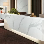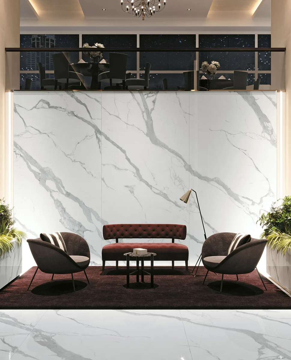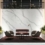 Classic Statuario van Infinity Surfaces is een porseleinen grootformaat plaat geïnspireerd op het beroemde Statuario-marmer, met een helder witte achtergrond en elegante grijze aders die een verfijnde, klassieke uitstraling geven aan elke ruimte. Deze premium keramische platen combineren de tijdloze schoonheid van natuursteen met de technische voordelen van porselein: hoogte weerstand tegen krassen, vlekken en hitte, plus eenvoudig onderhoud en een duurzame afwerking. Classic Statuario is ideaal voor werkbladen, vloeren, wanden en meubels in zowel residentiële als prestigieuze commerciële projecten waar een rustige, luxe esthetiek gewenst is.