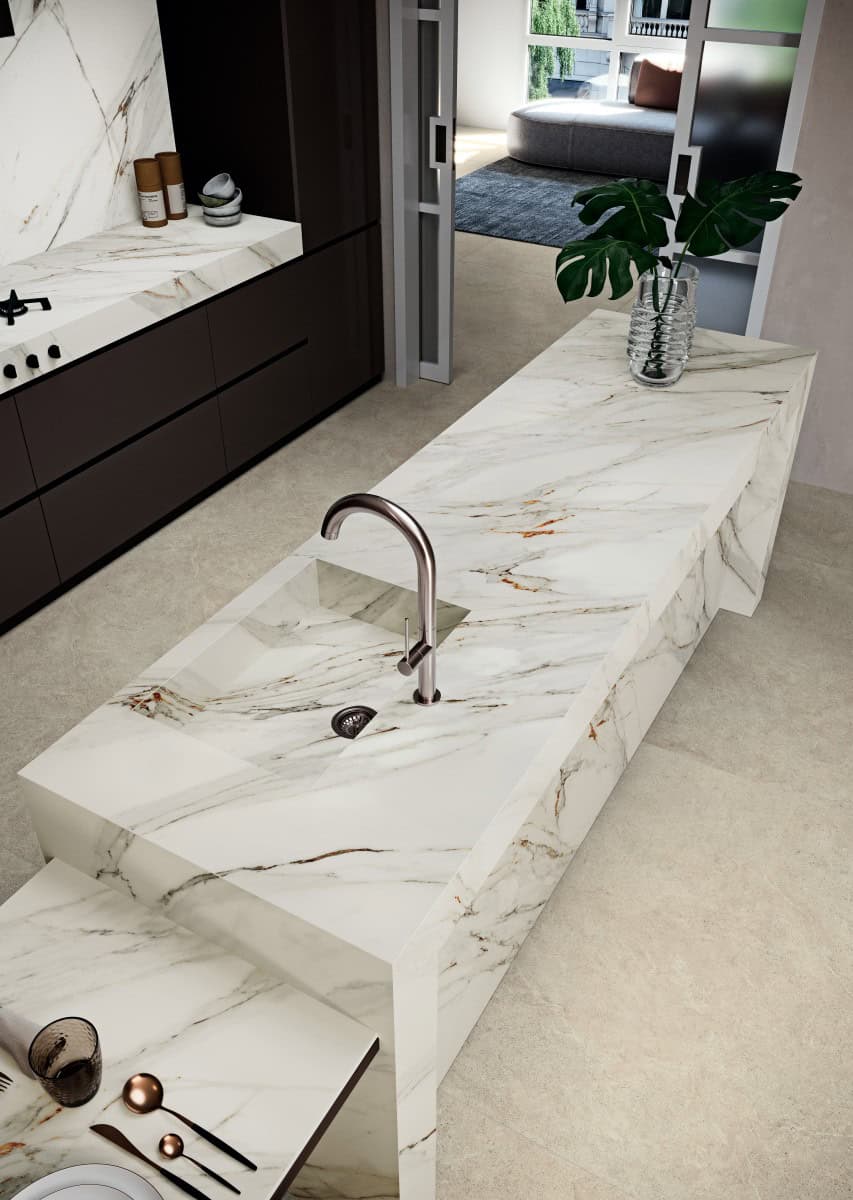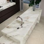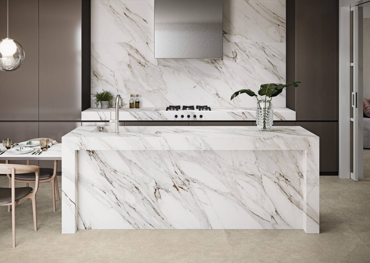 Geïnspireerd door het Apuano-marmer – een verfijnde Calacatta-variant die bekendstaat om zijn karakteristieke adering – is dit materiaal doordrenkt met persoonlijkheid en luxueuze uitstraling. De Corinto-serie van Coverlam onderscheidt zich door haar uitgesproken driedimensionaliteit, ver verwijderd van vlakke en simplistische oppervlakken. Elke plaat belichaamt diepte, textuur en een visuele rijkdom die direct opvalt.