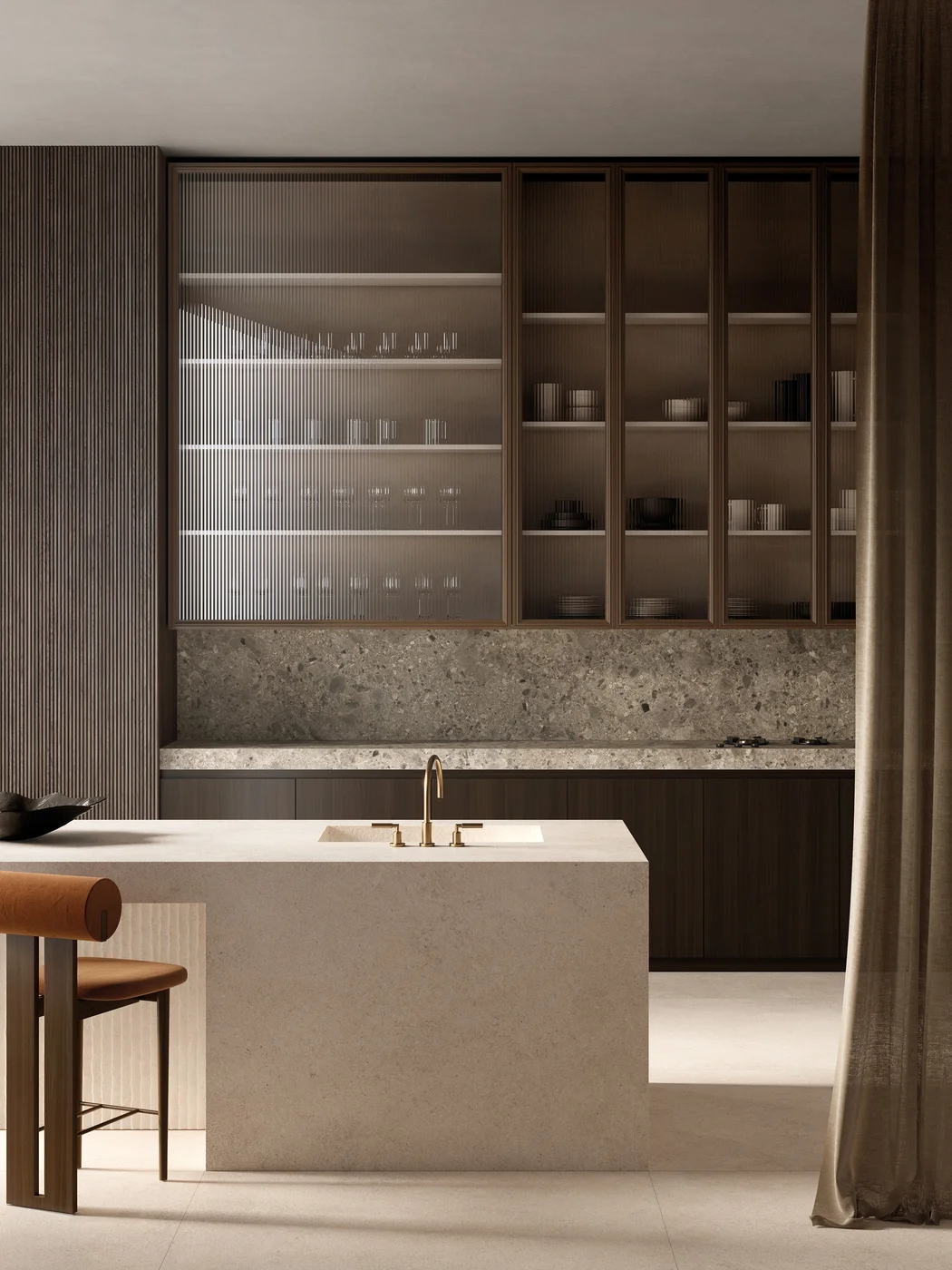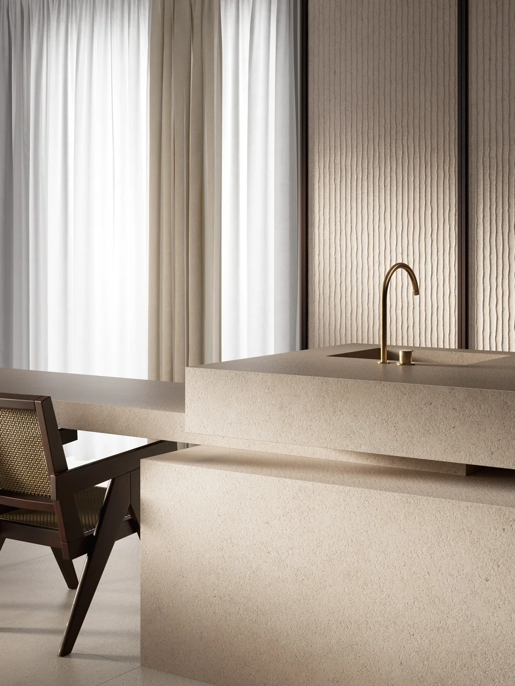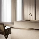 Sapienstone Crema Neve is een porseleinen grootformaat plaat met een heldere, zacht crèmewitte basis en subtiele, natuurlijke adertekening, geïnspireerd op klassieke, licht getinte marmersoorten. Het serene oppervlak voegt een rustige, elegante en tijdloze uitstraling toe aan elk interieur — van minimalistische, moderne keukens tot stijlvolle woon- en badkamerconcepten. Dankzij de hoogwaardige porseleinen samenstelling biedt Crema Neve uitstekende technische prestaties, zoals duurzaamheid, onderhoudsgemak en sterke resistentie tegen krassen, hitte en vlekken. Het grote formaat (bijv. 320×160 cm) maakt naadloze toepassingen mogelijk, waardoor het uitermate geschikt is voor werkbladen, vloeren, wanden en maatwerkmeubels in zowel residentiële als commerciële projecten.