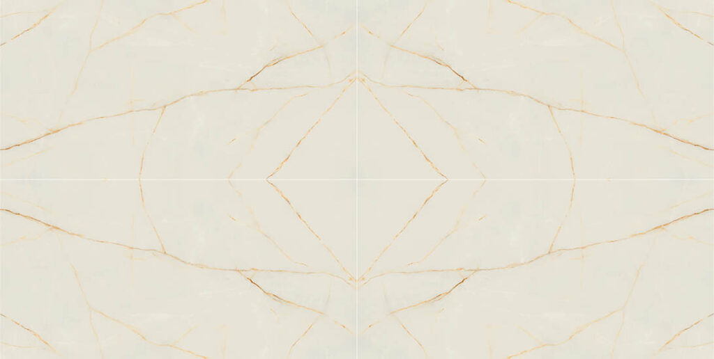 Laminam Diamond Cristallo Gold Book Match (Caress) is een exclusief keramisch oppervlak uit de Diamond-collectie dat de klassieke allure van wit marmer combineert met warme amber- en gouden aders — een combinatie van serene helderheid en subtiele luxe die in elke ruimte een statement maakt. De Book Match-techniek plaatst twee slabben tegenover elkaar als een geopend boek, wat zorgt voor een spectaculaire, continu doorlopende veindynamiek en een kunstzinnige visuele flow. De Caress-afwerking geeft een zachte, tactiele textuur die het oppervlak zowel visueel als zintuiglijk verrijkt. Dankzij de duurzame, onderhoudsarme porseleinen samenstelling is dit materiaal ideaal voor vloeren, wanden, werkbladen en architectonische accenten in hoogwaardige interieur- en exterieuroplossingen.