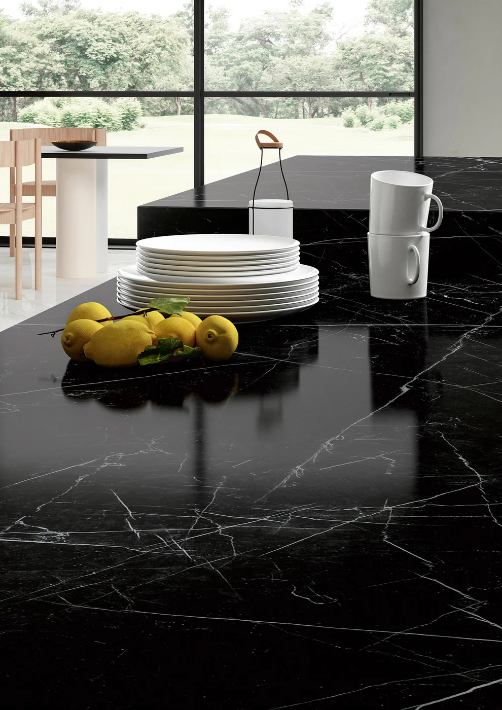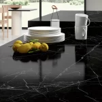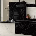 Sapienstone Dark Marquina is een indrukwekkende porseleinen grootformaat plaat geïnspireerd op het iconische zwarte Marquina-marmer, met een diepe, intense zwarte basis en scherpe, contrasterende witte aders die zorgen voor een dramatische, luxueuze uitstraling. Dit materiaal combineert de pure elegantie van natuursteen met de technische voordelen van premium keramiek: uitstekende kras-, hitte- en vlekbestendigheid, UV-stabiliteit en eenvoudig onderhoud maken het perfect geschikt voor dagelijks gebruik. Door de grote formaten (tot ca. 320×160 cm) creëert Dark Marquina naadloze, visueel strakke oppervlakken voor werkbladen, vloeren, wanden en maatwerkmeubels. Het is een krachtige keuze voor moderne, high-end residentiële en commerciële projecten die een chique, high-contrast statement willen maken.
