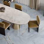 De natuurlijke textuur en het spel van licht en schaduw zorgen voor een indrukwekkend visueel effect, terwijl het oppervlak toch ingetogen en verfijnd blijft. Geschikt voor vloer- en wandtoepassingen, werkbladen of maatwerkmeubels, in zowel privéwoningen als commerciële ruimtes.