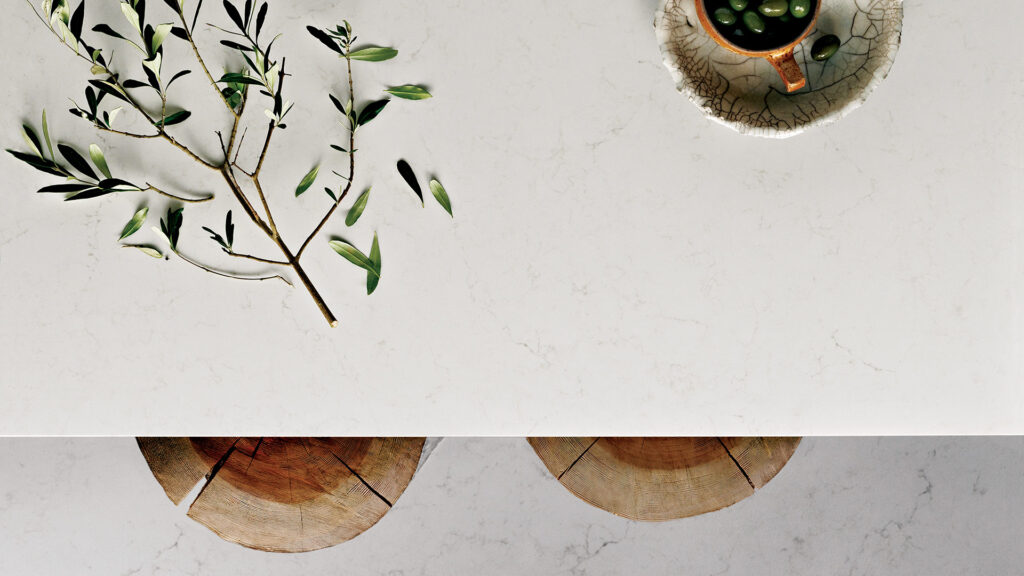 De Caesarstone 5141 Frosty Carrina presenteert een opmerkelijk ivoorwit oppervlak dat direct een gevoel van frisheid en verfijning oproept. Door de sierlijke, poedergrijze aderen ontstaat een prachtig speels contrast dat subtiel door het blad loopt, waardoor het design zowel rustgevend als elegant oogt. Deze combinatie van zacht ivoor en tijdloze grijstinten maakt Frosty Carrina tot een klassieke keuze met een moderne uitstraling. Het oppervlak voelt warm en uitnodigend aan, terwijl het toch een strakke, hoogwaardige esthetiek behoudt. Perfect voor interieurs waarin stijl, balans en tijdloze elegantie centraal staan.