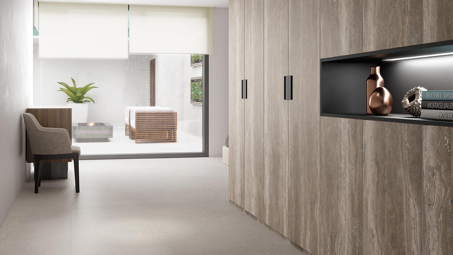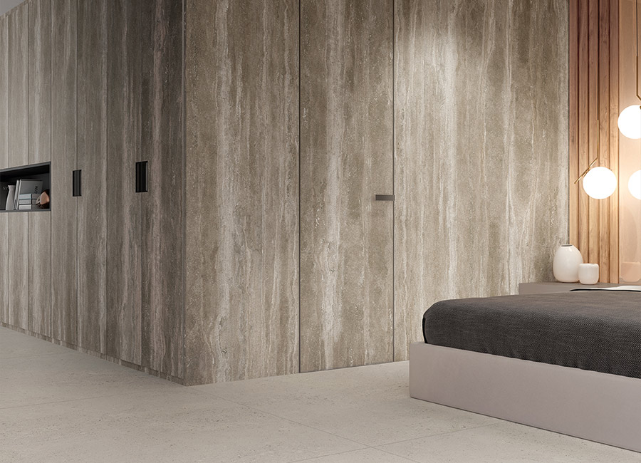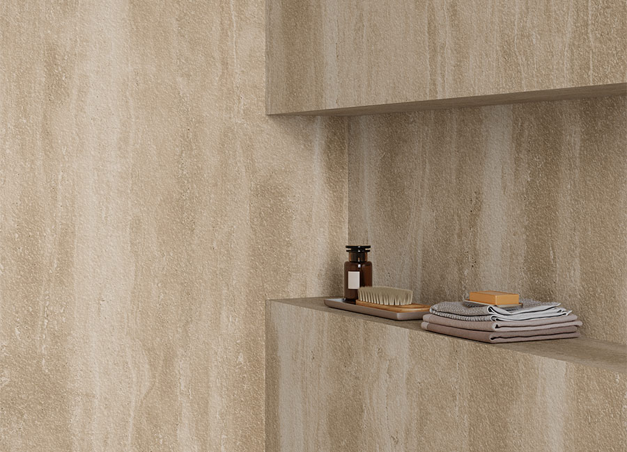 De GEO-collectie van Inalco is geïnspireerd op travertijnmarmer — een natuursteen met subtiele, lineaire aders die elegantie uitstralen. Het ontwerp belicht de zachte aders in een rustige maar karaktervolle compositie, ideaal voor wie een natuurlijke maar verfijnde look zoekt. GEO is beschikbaar in de kleuren Crema en Gris, wat respectievelijk warme en koele neutrale tonen biedt. Qua afwerking biedt Inalco twee opties: Bush-hammered, waarmee het oppervlak licht reliëf krijgt via een hamerachtige structuur, en Abuj Grip+, die extra grip of textuur toevoegt voor toepassingen waar antislip belangrijk kan zijn. De platen zijn verkrijgbaar in formaten van 1600×3200 mm, 1600×1600 mm, 1000×3000 mm en 1000×1000 mm, en in diktes van 4 tot 12 mm, wat flexibiliteit biedt voor gebruik in wanden, vloeren, gevels of interieuraccenten. GEO combineert de esthetiek van natuursteen met de technische en esthetische voordelen van moderne MDi-oppervlakken, waardoor het een uitstekende keuze is voor projecten die schoonheid en functionaliteit willen verenigen.