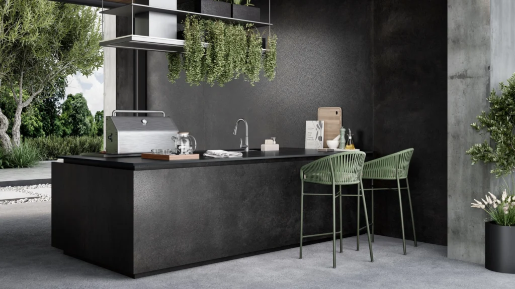 De Caesarstone 311 Graphite Metal vangt een sfeervol palet van blauwgrijze en antraciettinten waarin lichte en donkere nuances een diepe, robuuste textuur vormen die doet denken aan verweerd staal met vervaagde tinten en korrelige effecten. Deze industriële look, geïnspireerd door de karakteristieke schoonheid van metaal en beton, krijgt een eigentijdse twist die een klassieke stedelijke esthetiek nieuw leven inblaast. Graphite Metal voelt krachtig maar verfijnd aan, met een tactiele diepte die zowel visuele als designintensiteit toevoegt aan moderne keukens, badkamers en leefruimtes.