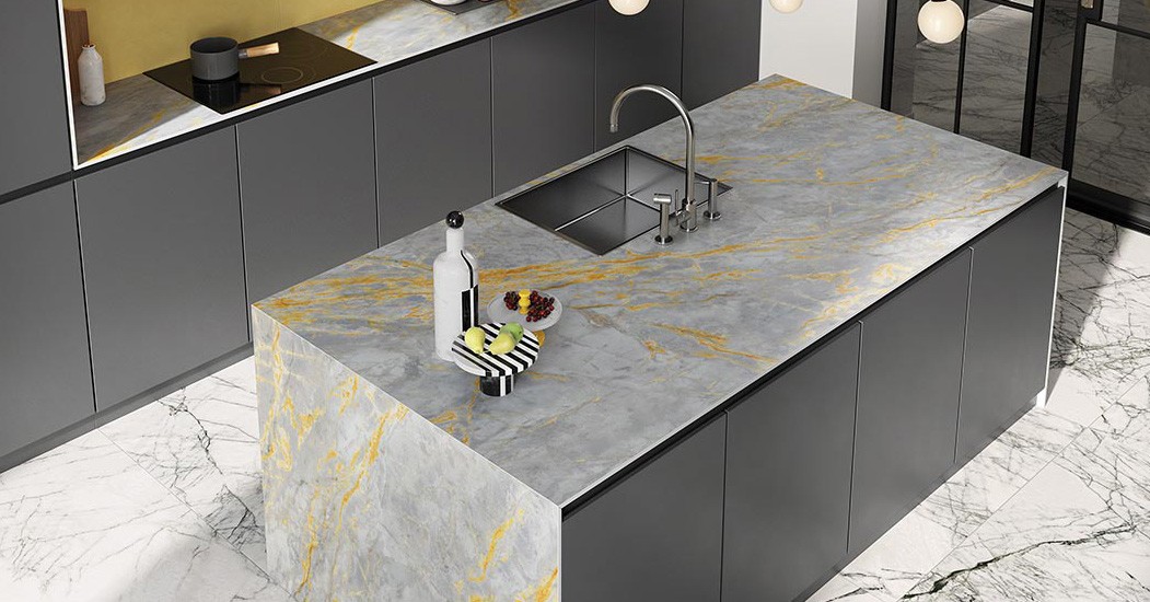 Grigio Siena natuursteen aanrechtblad combineert stijl en duurzaamheid; met elegante grijstinten brengt het een luxe en tijdloze uitstraling.