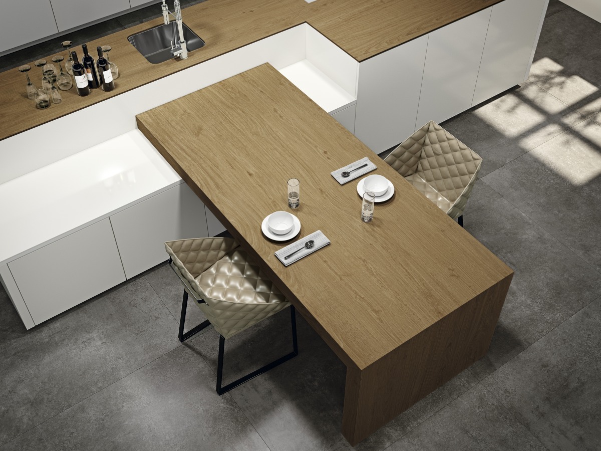 Irati Nogal brengt de rijke, warme uitstraling van walnotenhout tot leven in een verfijnde en natuurgetrouwe uitvoering. De diepe bruine tinten, elegante nerfstructuren en subtiele glans geven deze collectie een luxueus karakter dat onmiddellijk warmte en persoonlijkheid toevoegt aan elke ruimte. De balans tussen donkerdere accenten en zachte overgangen in de houttekening zorgt voor een harmonieuze, sophisticated look die zowel klassiek als eigentijds aanvoelt. Hierdoor vormt Irati Nogal een tijdloze basis voor interieurs waarin stijl, comfort en natuurlijke elegantie centraal staan.