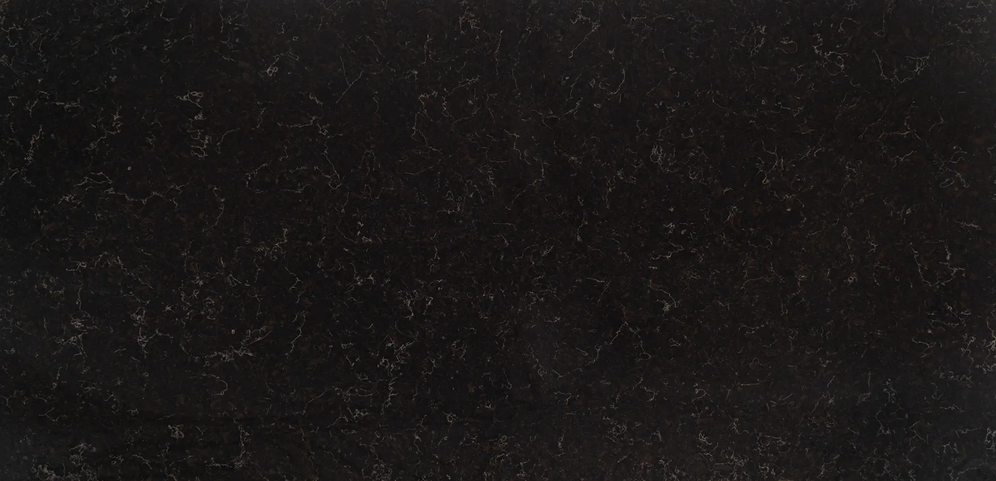 Dit fijnkorrelige zwarte kwartscomposiet heeft een diepe, intense basis die wordt doorbroken door blekere, onregelmatige aders die speels over het oppervlak zijn verspreid. Deze lichte nuances zorgen voor contrast en geven het materiaal een verfijnde, natuurlijke dynamiek. Het composiet is opgebouwd uit silicium en hoogwaardig natuurlijk kwarts, gebonden met een duurzame polyesterhars. Dankzij productie met geavanceerde BRETON-technologie en Through Tone Technology lopen kleur en structuur gelijkmatig door de volledige plaat. Het resultaat is een homogeen, slijtvast en onderhoudsvriendelijk oppervlak met een krachtige, tijdloze uitstraling, geschikt voor hoogwaardige en moderne interieurtoepassingen.