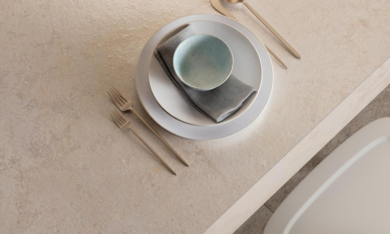 Jura Sand vertaalt de esthetiek van natuurlijke kalksteen naar een serene, warme look met zachte zandnuances en verfijnde details. De lichte schakeringen geven diepte zonder te overheersen, waardoor een harmonische basis ontstaat voor zowel minimalistische als meer klassieke interieurs. Het neutrale kleurenbereik laat zich makkelijk combineren met hout, licht textiel, natuursteenaccenten of mat zwart metaal.