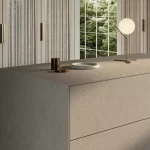Sapienstone Luna Limestone is een porseleinen grootformaat plaat geïnspireerd op fijn Frans kalksteen met een zachte, crèmewarme beige tint en een minimalistische, natuurlijke textuur die rust en elegantie toevoegt aan elk ontwerp. De subtiele sedimentaire structuren en delicate, natuurlijke variaties geven de slab een verfijnde, organische uitstraling die naadloos past bij zowel klassieke als moderne interieurs. Luna Limestone is gemaakt van premium porselein en biedt uitstekende technische prestaties — het is duurzaam, praktisch onderhoudsarm, resistent tegen krassen, hitte en vlekken en uitstekend geschikt voor intensief gebruik. Dankzij het grote formaat (320×160 cm) zijn vrijwel naadloze toepassingen mogelijk voor werkbladen, vloeren, wanden en meubels in residentiële en commerciële projecten.