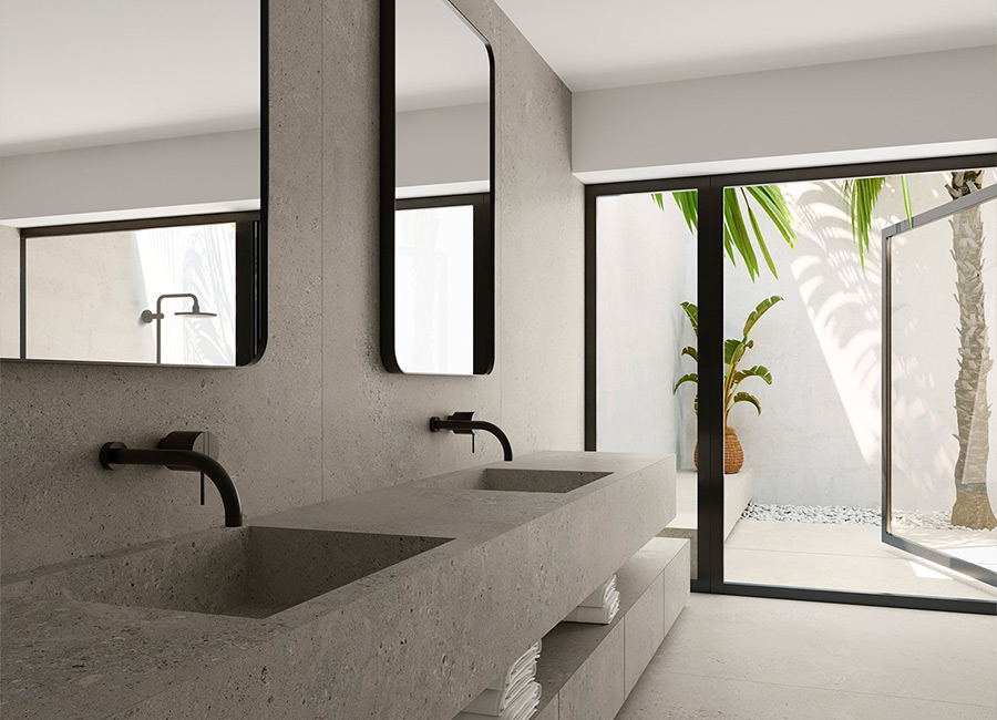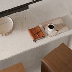 De Masai-collectie van Inalco is geïnspireerd op sedimentair gesteente waarin fragmenten van verschillende materialen en mineralen zijn samengebracht. Het ontwerp benadrukt de schoonheid van de kleine steenpartikels (kiezelfragmenten) die in het oppervlak gevangen liggen, wat zorgt voor een rijke en genuanceerde look. Dankzij het brede formaat van de platen — tot 1600 × 3200 mm — kan dit effect grootschalig worden toegepast, waardoor structuren indrukwekkend tot hun recht komen. Voor de afwerking zijn opties als bush-hammered en Abuj Grip+ beschikbaar, waardoor het oppervlak een tactiele textuur krijgt die zowel visueel als functioneel intrigeert. De kleurtonen “Blanco Plus” en “Piedra” bieden enerzijds een heldere neutrale basis, anderzijds subtiel getinte nuances. Masai is daardoor toepasbaar in uiteenlopende omgevingen waar men een esthetisch rijk, natuurlijk en karaktervol oppervlak wil integreren — bijvoorbeeld in wanden, vloeren of accentpanelen. Het materiaal combineert esthetische expressie met technische prestaties, wat het geschikt maakt voor ambitieuze ontwerpprojecten.
