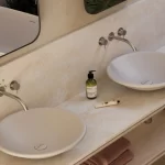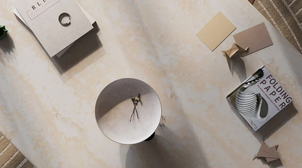 De Caesarstone 8151 Moonflow combineert een stralend botwitte basis met subtiel doorschijnende lagen in crèmekleurige en beige tinten die harmonieus in elkaar overlopen. Deze organische overgang creëert een oppervlak dat rust en licht uitstraalt, alsof het van binnenuit zacht gloeid. De textuur voelt levendig en verfijnd aan, met een natuurlijke diepte en beweging die elke hoek van de ruimte visueel verrijkt. Moonflow versterkt lichte, warme interieurs en vormt een serene achtergrond bij zowel moderne als klassieke ontwerpen. Het resultaat is een elegant en uitnodigend blad dat sfeer en karakter toevoegt zonder te overheersen.