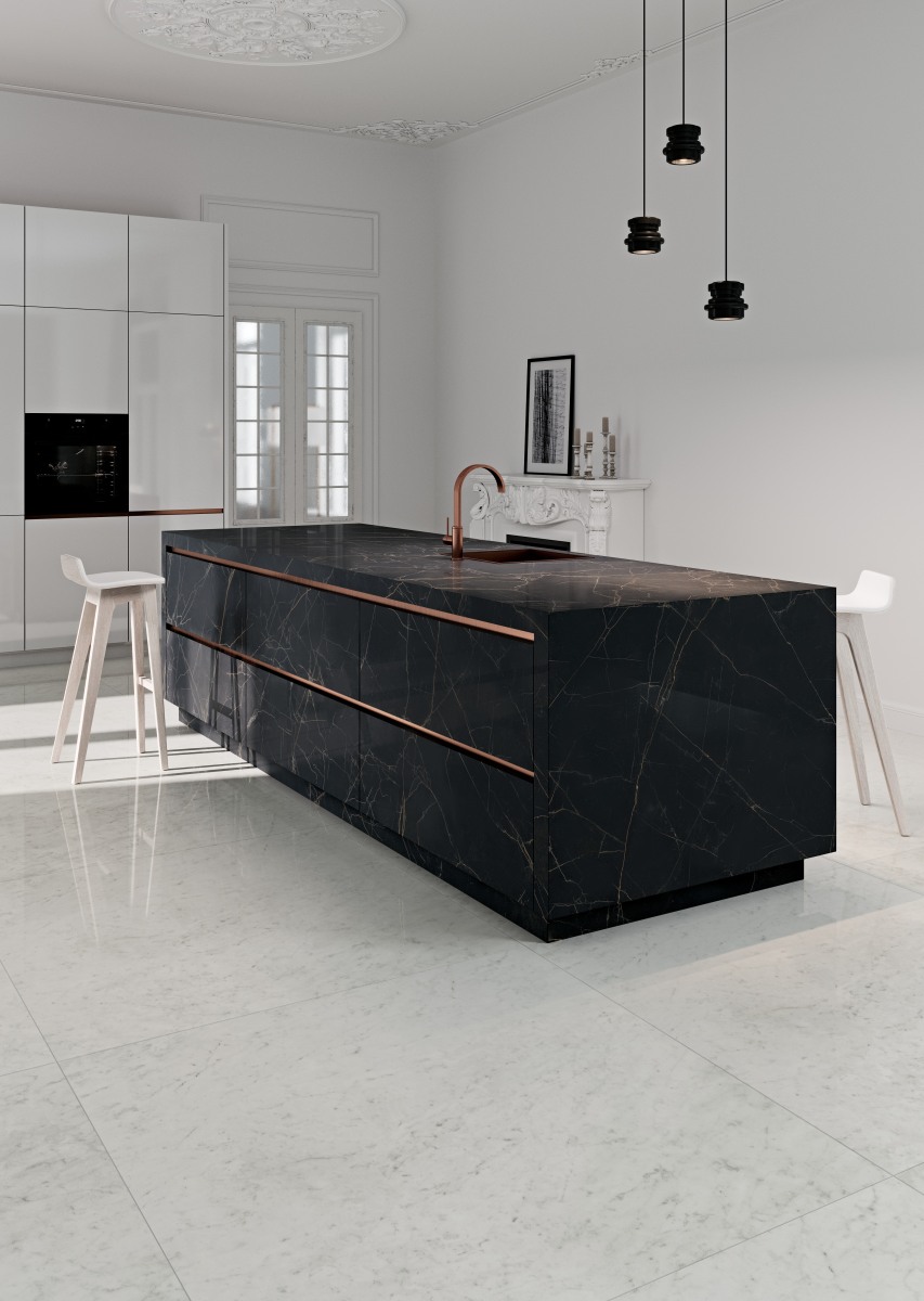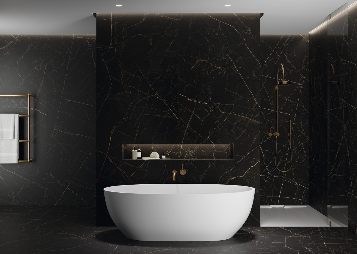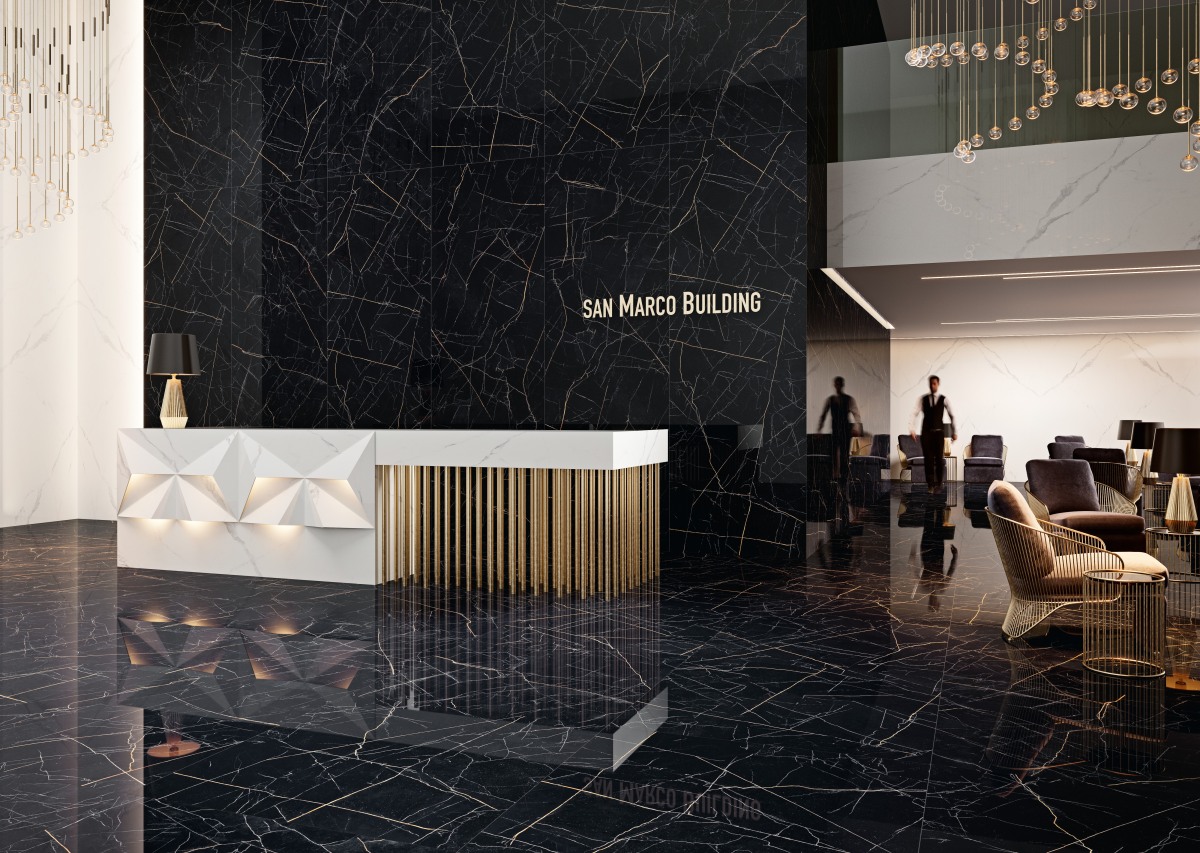 De schoonheid en weelde van het intens zwarte oppervlak worden nog verder versterkt door de gepolijste afwerking, die het marmer een spiegelachtige glans en een verfijnde diepte geeft. Hierdoor komt de gouden adering nog prominenter naar voren, wat een rijk contrast creëert dat zowel tijdloos als modern oogt. Nero Ardí is bij uitstek geschikt voor prestigieuze projecten zoals luxe badkamers, statige entreehallen, exclusieve werkbladen en high-end hospitality-ruimtes, waar het materiaal zowel visuele impact als een gevoel van verfijnde luxe toevoegt.
