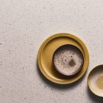 De Caesarstone 6600 Nougat combineert grove, korrelige texturen met neutraal gekleurde minerale chips die speels verdeeld liggen op een klassiek wit canvas. Het resultaat is een oppervlakte dat krachtig en toch subtiel oogt, vol karakter zonder overweldigend te zijn. De minerale chips geven diepte en tactiele aantrekkingskracht, terwijl het heldere witte fundament zorgt voor een frisse, lichte uitstraling in elke ruimte. Nougat voelt warm en uitnodigend aan en past prachtig in zowel moderne als tijdloze interieurs. Deze veelzijdige kwartssteen tilt je keuken of badkamer naar een verfijnde, natuurlijke esthetiek.