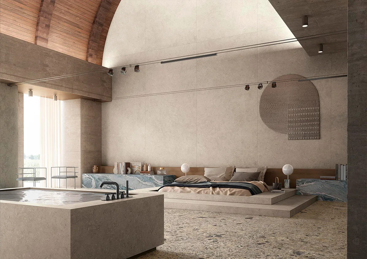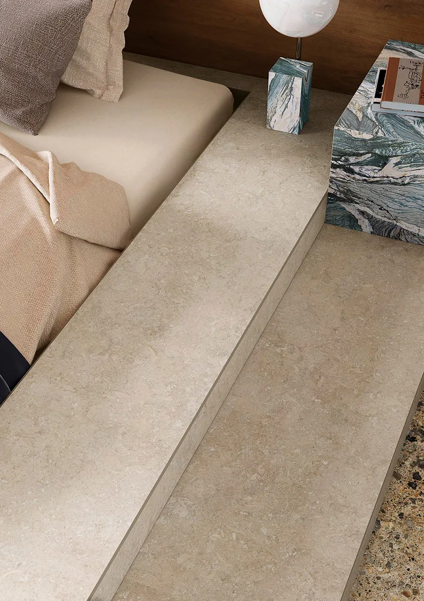 Palladium Ivory van Infinity Surfaces is een verfijnde porseleinen grootformaat plaat met een subtiele kalkstenen-look in warme, zachte ivoor- en crème-tonen die een rustige, elegante basis geven aan je interieur. Het materiaal combineert een natuurlijke, tactiele diepte met een ingetogen dynamiek, waardoor het een perfecte keuze is voor gebalanceerde, hoogwaardige ruimtes zoals luxe woonkamers, keukens en badkamers. Door de geavanceerde porseleinen technologie biedt Palladium Ivory niet alleen een stijlvolle uitstraling, maar ook duurzaamheid, onderhoudsgemak en weerstand tegen krassen en vlekken, wat het uitstekend geschikt maakt voor werkbladen, vloeren, wanden en meubels in zowel residentiële als commerciële projecten.
