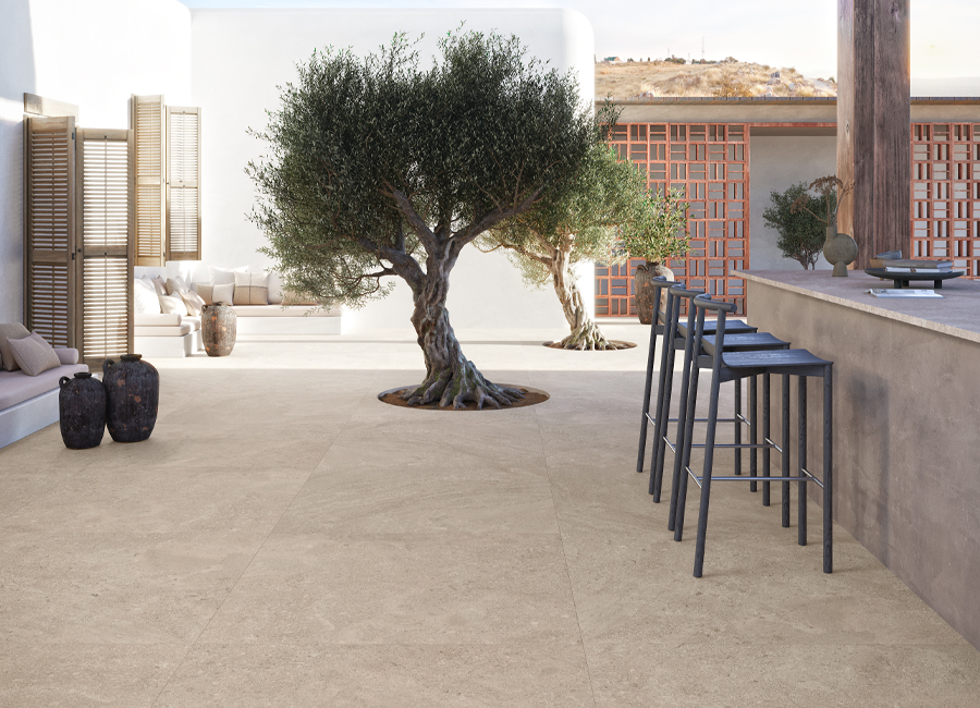De Petra-collectie van Inalco is geïnspireerd op natuurlijke kalksteenformaties, waarbij het ontwerp tracht de warme schoonheid en unieke structuren van natuursteen te vangen. Met aders en patronen die ogenschijnlijk willekeurig in het materiaal lopen, ontstaat een levendig en verfijnd oppervlak dat charme en karakter toevoegt aan leefruimten. De afwerkingen bush-hammered en Abuj Grip+ geven het oppervlak tactiele kwaliteit, waarbij reliëf en textuur worden geïntegreerd zonder de elegantie van het patroon te ondermijnen. Petra is verkrijgbaar in een reeks standaardplaten (bijv. 1600×3200 mm, 1000×3000 mm) en in diktes van 4 tot 20 mm, wat flexibiliteit biedt voor uiteenlopende toepassingen, zoals wandbekleding, vloeroppervlakken of accentpanelen. De basiskleur Crema draagt warmte en neutraliteit, waardoor Petra in uiteenlopende interieur- en exterieurcontexten inzetbaar is. Dit materiaal combineert esthetiek met technische afwerking, waardoor het geschikt is voor projecten die een harmonieuze balans tussen natuurlijk expressie en functionele prestaties verlangen.