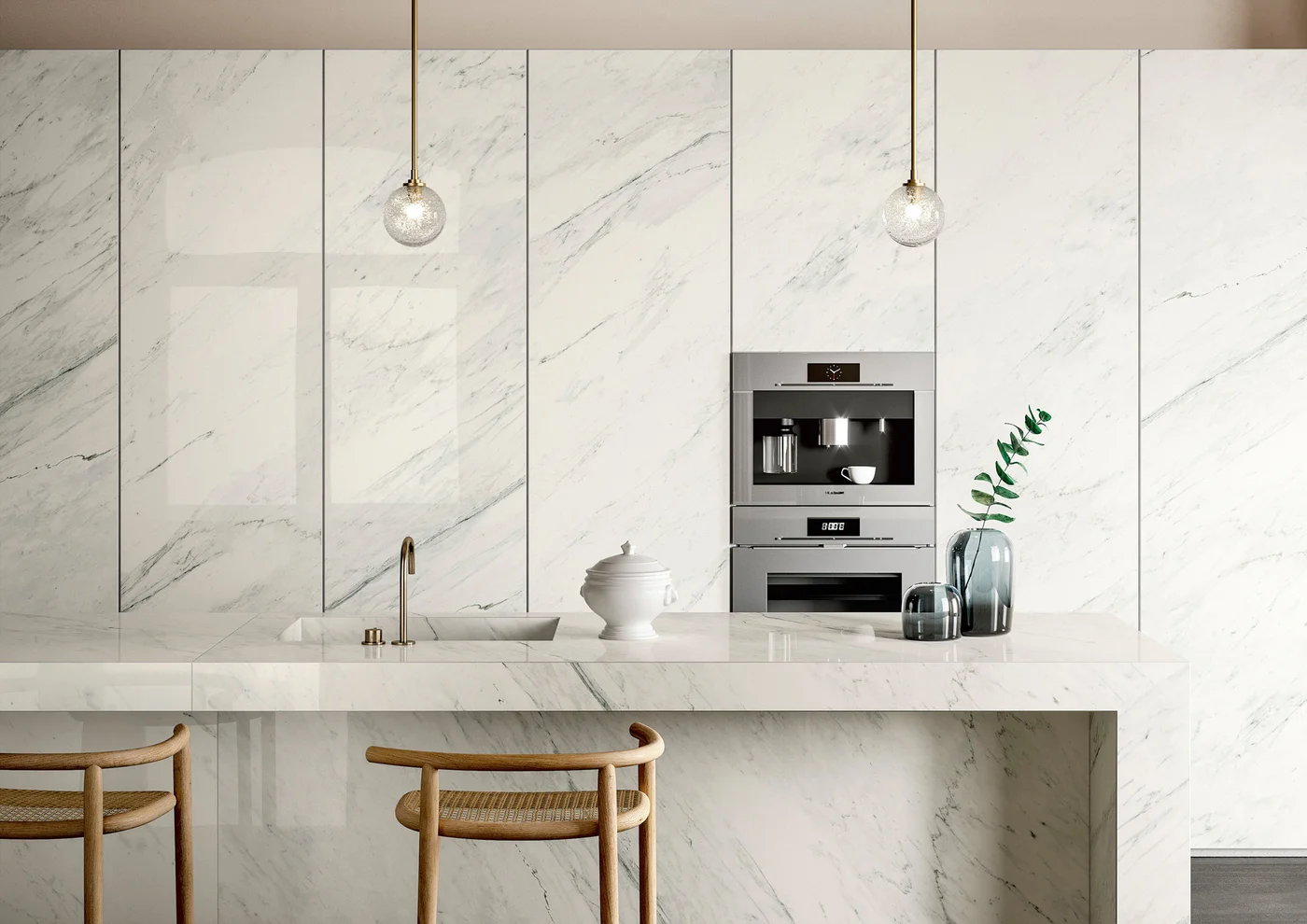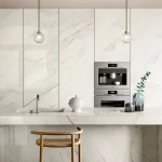 Sapienstone Premium White is een porseleinen grootformaat plaat met een heldere, strak witte en egale uitstraling, ontworpen voor wie een pure, minimalistische en tijdloze basis wil in interieurontwerp. De neutrale en uniforme kleur zorgt voor een rustige, lichte sfeer die goed combineert met uiteenlopende stijlen — van strak modern tot klassiek minimalisme. Dankzij de hoogwaardige porseleinen samenstelling biedt Premium White uitstekende technische prestaties: hoge kras-, hitte- en vlekbestendigheid, UV-stabiliteit en eenvoudig onderhoud. Het grote formaat (ca. 320×160 cm) maakt naadloze, visueel rustige oppervlakken mogelijk, ideaal voor werkbladen, vloeren, wanden en meubels in zowel residentiële als commerciële projecten waar een serene, witte look gewenst is.