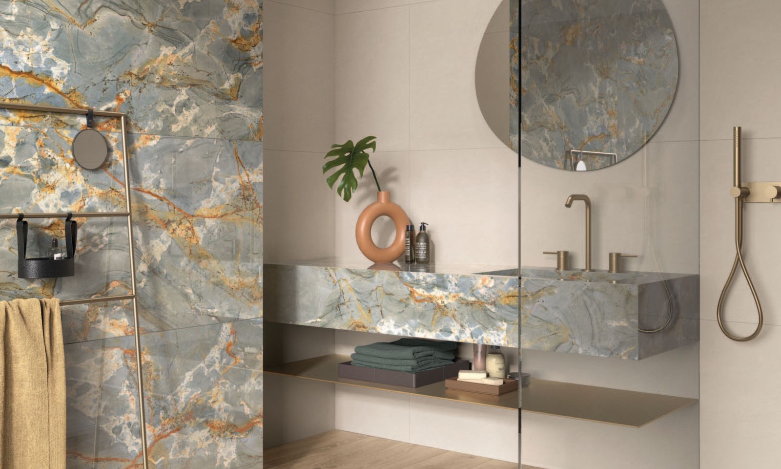Roma Imperiale belichaamt de luxe van gekleurde marmer, geïnspireerd op renaissance-esthetiek, maar dan met een moderne twist. De slab toont een dynamisch palet van rijke tonen, gecombineerd in een geometrisch en opvallend design dat luxe en karakter uitstraalt. Uitgeleverd in een imposant formaat van 1635 × 3230 mm, available in zowel de SOFT als LUX finish voor respectievelijk een matte en glanzende uitstraling.