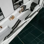 Sahara Noir van Infinity Surfaces is een luxe porseleinen grootformaat plaat met een intense, diepe zwarte basis die wordt dooraderd met warme, gouden accenten voor een dramatisch en exclusief effect. Dit materiaal combineert de tijdloze aantrekkingskracht van zwart marmer met de technische voordelen van premium keramiek: slijtvastheid, hitte-, kras- en vlekbestendigheid en eenvoudig onderhoud maken het uitermate geschikt voor veeleisende toepassingen. Sahara Noir biedt een sterke visuele identiteit en luxe uitstraling, ideaal voor werkbladen, vloeren, wanden, tafels en verticale toepassingen in zowel residentiële als commerciële projecten waar een gedurfd en elegant statement gewenst is.