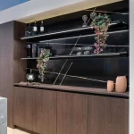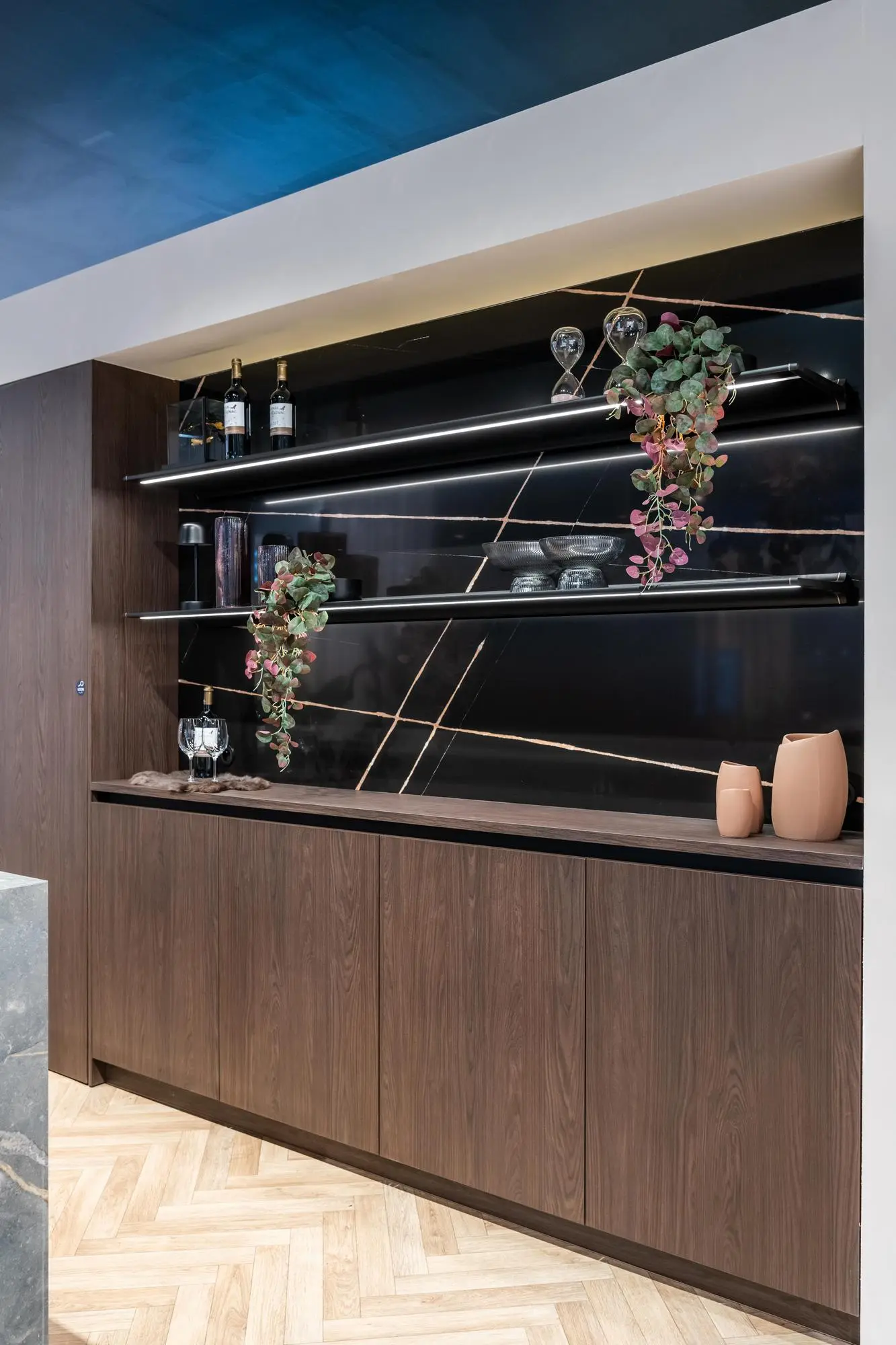 Dit fijnkorrelige zwarte kwartscomposiet heeft een diepe, krachtige basis die wordt doorsneden door vrij rechte aders in helder wit en warm oranje. Deze opvallende lijnen lopen doelgericht over het oppervlak en creëren een uitgesproken grafisch contrast met de donkere ondergrond. Het resultaat is een dynamisch en modern ontwerp met een eigentijdse uitstraling. Het composiet is samengesteld uit silicium en hoogwaardig natuurlijk kwarts, gebonden met een duurzame polyesterhars. Dankzij productie met geavanceerde BRETON-technologie en Through Tone Technology blijven kleur en structuur consistent door de volledige plaat. Het oppervlak is homogeen, slijtvast en onderhoudsvriendelijk, ideaal voor gedurfde en hoogwaardige interieurtoepassingen.