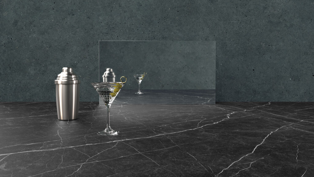 Dit indrukwekkende oppervlak wordt gedomineerd door een diepe middernachtzwarte basis die kracht en intensiteit uitstraalt. Krijtachtig witte lijnen snijden er fel doorheen als bliksemschichten en zorgen voor een dramatisch contrast. Fijnere aderen bewegen subtiel over het donkere vlak en versterken het gevoel van dynamiek en emotie. Verspreid door het oppervlak zijn aardse onzuiverheden en kristallijne structuren zichtbaar, geïnspireerd op de natuurlijke ontwikkeling van marmer door de tijd heen. De Ultra Rough-afwerking benadrukt het tastbare karakter en geeft het materiaal een rauwe, bijna sculpturale uitstraling die perfect past bij uitgesproken en luxueuze interieurs.