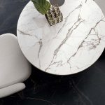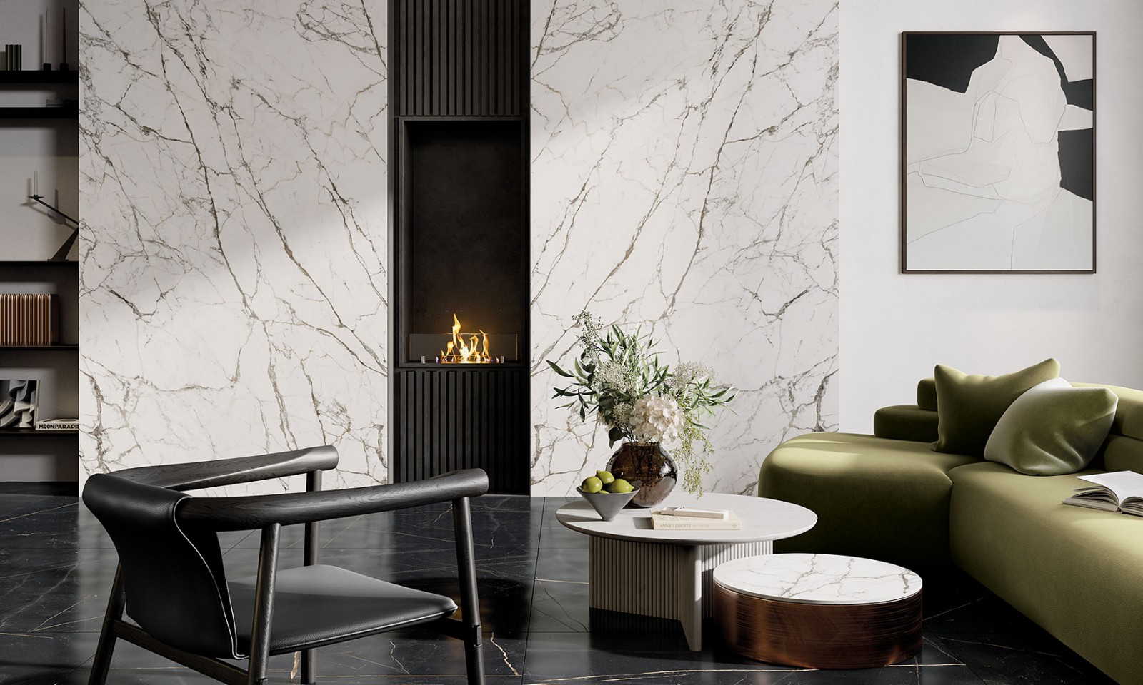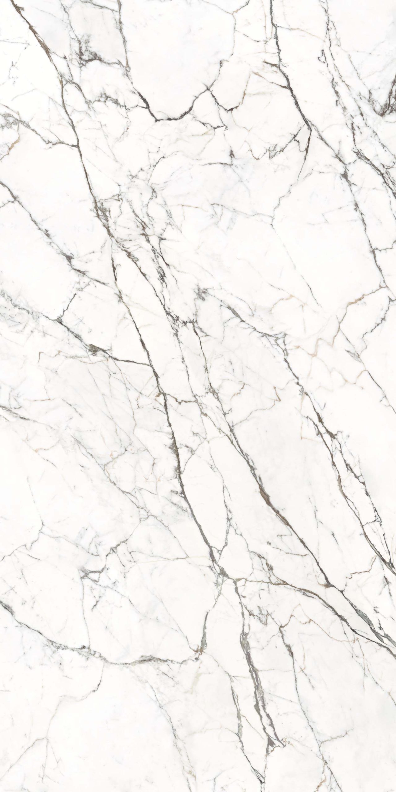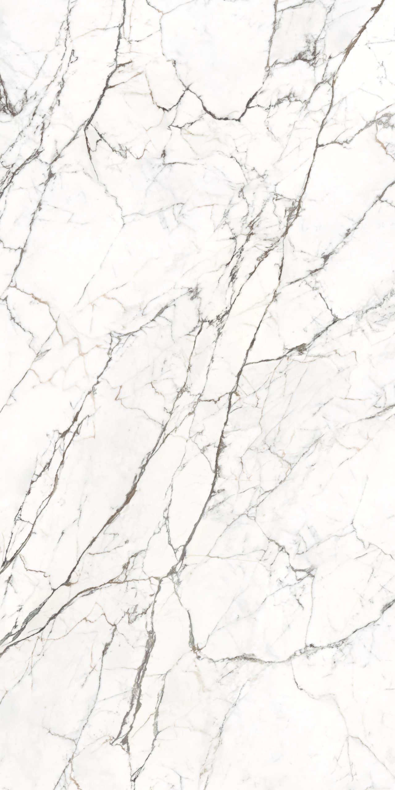 Statuario Fantastico onderscheidt zich door een helder, wit marmerachtig fundament dat wordt verlevendigd door dynamische, grijze aders die als inktlijnen een elegant patroon vormen. Deze aders variëren in tint, van zacht grijs tot donker antraciet, en geven de slab een expressieve, verfijnde uitstraling – perfect voor wie houdt van een luxueuze marmerimitatie met karakter.