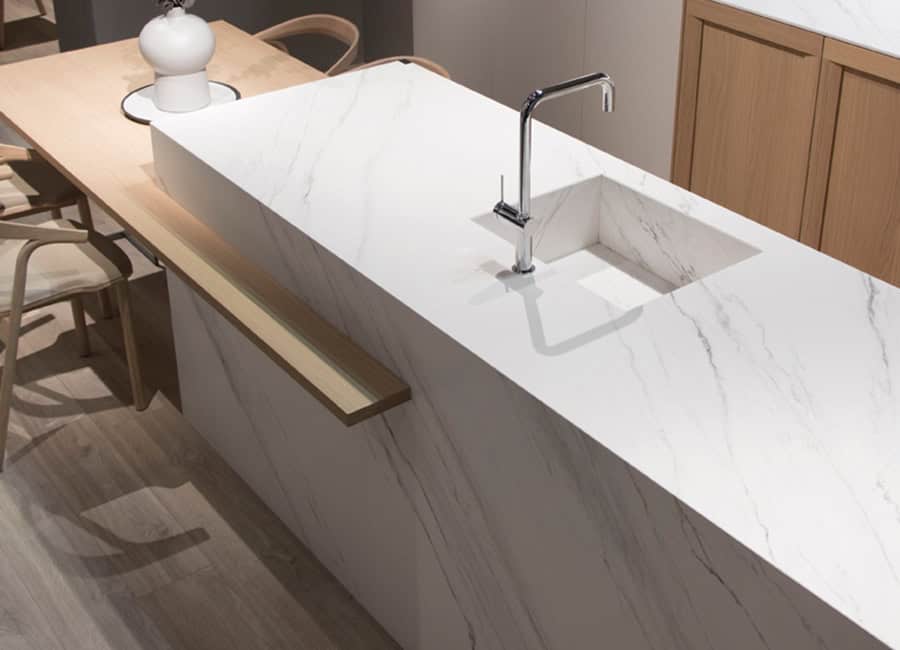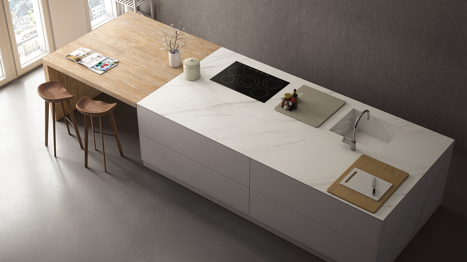 TOUCHÉ is een collectie binnen de MDi-portfolio van Inalco die classicisme en verfijning samenbrengt. Het oppervlak is geïnspireerd op hoogwaardige klassieke marmersoorten: een zuiver witte basis wordt subtiel doorsneden door elegante aderingen, waardoor het geheel een tijdloze en luxueuze uitstraling krijgt. Dankzij de “Natural” afwerking behoudt het oppervlak een zachte, matte sensatie zonder glans, wat bijdraagt aan een authentiek materiaalgevoel.