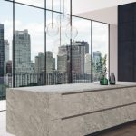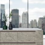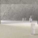 Dit expressieve oppervlak wordt gekenmerkt door krachtige marmering en uitgesproken aderen die samen een organische, natuurlijke esthetiek vormen. Stoffige grijstinten clusteren speels en worden omlijst door helderdere, bijna witte zones die voor contrast en ademruimte zorgen. De neutrale basis is verrijkt met verzachte, door de natuur geïnspireerde ondertonen, subtiel doorbroken door frisse witte accenten. Deze gelaagde compositie geeft het materiaal een robuuste maar verfijnde uitstraling. De Ultra Rough-afwerking versterkt het rauwe, tastbare karakter en maakt dit oppervlak perfect voor gedurfde interieurs waarin textuur en natuurlijke kracht centraal staan.