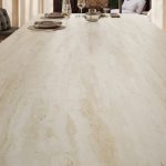 De Travertino-serie herontdekt de essentie van een van de meest iconische natuurstenen en vertaalt deze naar een hedendaagse ontwerpstijl die luxe, authenticiteit en verfijning uitstraalt. Travertin, al eeuwen gewaardeerd om zijn warme kleurnuances en kenmerkende lagenstructuur, krijgt in deze collectie een moderne interpretatie die perfect aansluit bij de esthetiek van vandaag. De serie combineert de tijdloze uitstraling van traditioneel travertin met een strakke, architectonische benadering waardoor het materiaal zowel in klassieke als moderne ruimtes tot zijn recht komt. Het resultaat is een collectie die de rijke geschiedenis van travertin eert, maar deze tegelijk vernieuwt met een subtieler en eigentijdser karakter.
