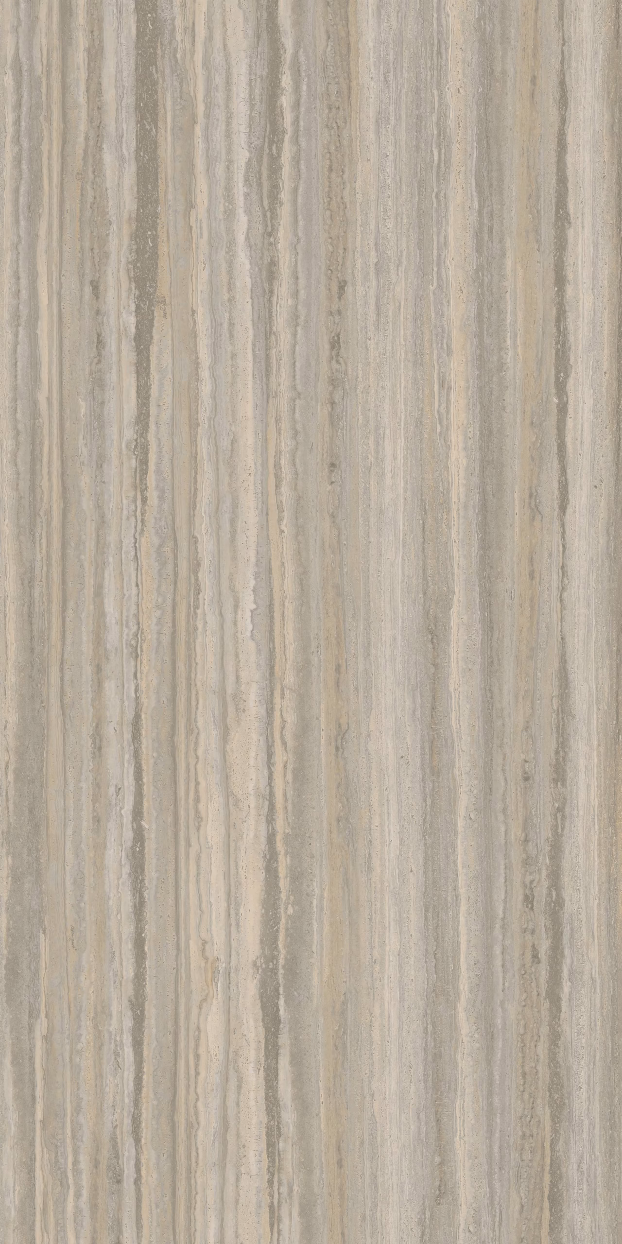 Laminam I Naturali Travertino Grigio Venato (Bush Hammered) is een hoogwaardig keramisch oppervlak uit de I Naturali-collectie van Laminam dat de subtiele elegantie van natuurlijk grijs travertijn vertaalt naar grootformaat porseleinen platen. Het design toont een zachte grijs-beige achtergrond met fijne, lichtgekleurde aders die visueel doorlopen over het oppervlak en een harmonieuze, natuurlijke uitstraling geven die zowel klassieke als moderne interieurs versterkt. De Bush Hammered afwerking voegt een tactiele structuur toe en zorgt voor een antislip R10-karakter, wat het materiaal ook geschikt maakt voor natte ruimtes zoals badkamers of terrassen. Travertino Grigio Venato is duurzaam, onderhoudsarm en ideaal toepasbaar voor vloeren, wanden, gevels en werkbladen — binnen en buiten — met een tijdloze esthetiek geïnspireerd op echte travertijnsteen.