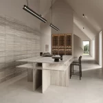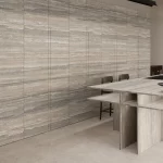 Travertino Trilogy van Infinity Surfaces is een porseleinen grootformaat plaat geïnspireerd op de tijdloze uitstraling van travertijnsteen, met een gerichte en doorlopende adertekening die visuele diepte en structuur toevoegt aan elk oppervlak. Deze keramische plaat maakt gebruik van geavanceerde Vein-Tech-technologie, waarbij de aders door het materiaal lopen voor een natuurlijke, consistente uitstraling die perfect is voor grote, naadloze toepassingen. De veelzijdige porseleinen samenstelling biedt uitstekende slijtvastheid, onderhoudsgemak en technische prestaties, waardoor Travertino Trilogy ideaal is voor werkbladen, vloeren, wanden en meubels in luxe interieur- en ontwerpprojecten.