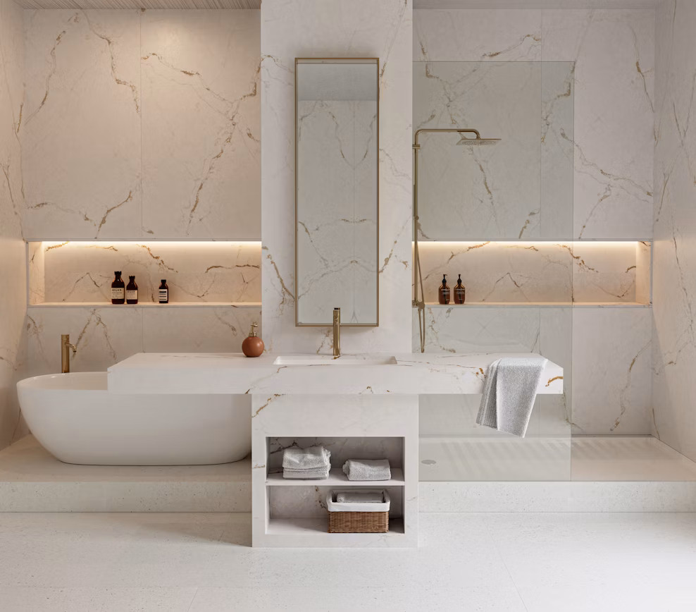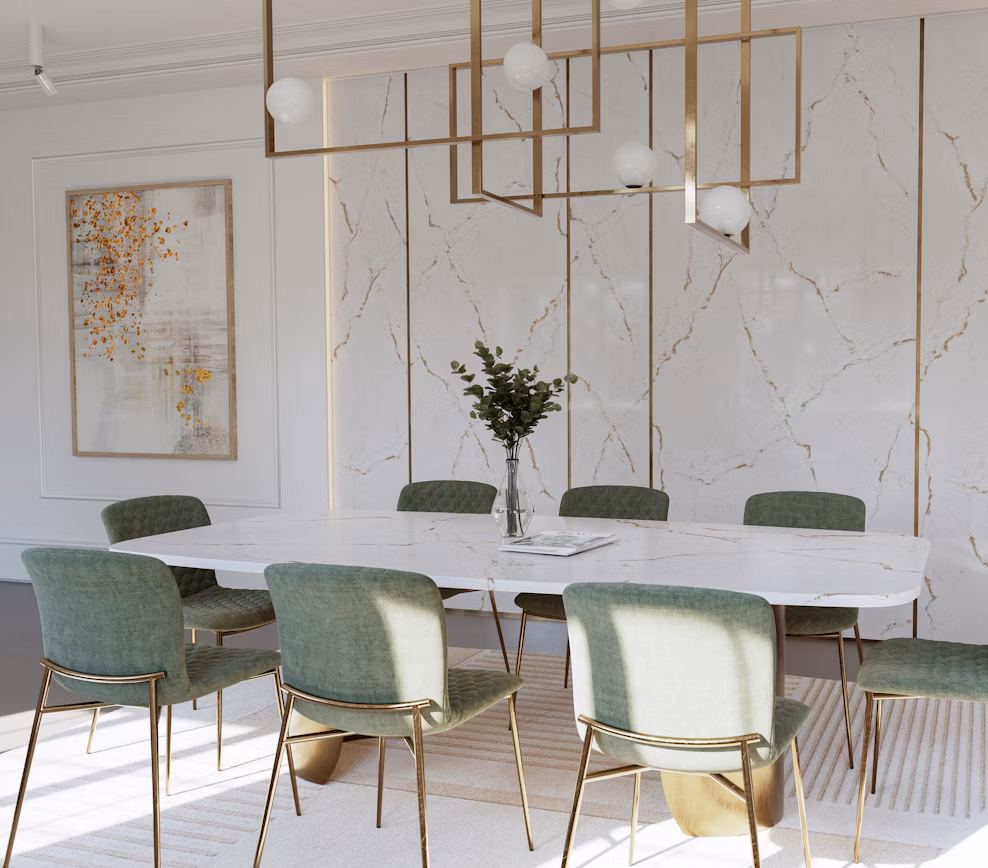 Zeer subtiele, tweekleurige marmering op de achtergrond, met gradiënteffecten betoveren met de flikkerende lichten van zijn gouden sprankeling. Versailles Ivory straalt luxe en elegantie uit en doet denken aan de uitbundigheid van het Paleis van Versailles. Deze prachtige nuance voegt een vleugje verfijning toe aan elke ruimte en maakt een gedurfd statement dat verfijnde smaak en leven uitdraagt.