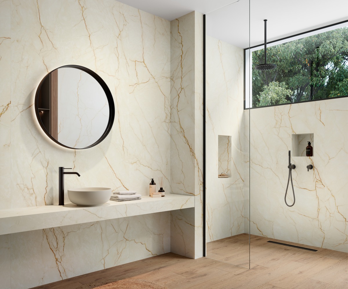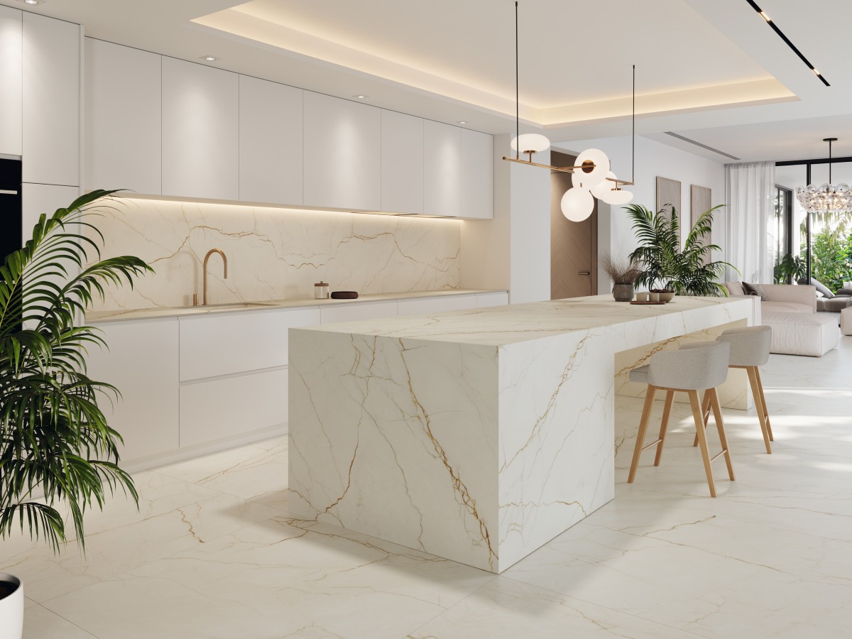 Wat White Balance werkelijk bijzonder maakt, zijn de fijne goudkleurige aders die elegant over de platen vloeien. Deze delicate lijnen voegen een vleugje verfijnde luxe toe zonder de chromatische soberheid te doorbreken, waardoor een subtiel maar indrukwekkend contrast ontstaat. Het resultaat is een collectie die zowel warm als modern aanvoelt, perfect voor ruimtes die een lichte, hoogwaardige en sophisticated uitstraling nastreven. Dankzij de evenwichtige grafische compositie en de superieure technische eigenschappen vormt White Balance een ideale keuze voor keukens, badkamers, leefruimtes en commerciële projecten die tijdloze elegantie willen combineren met hedendaagse finesse.