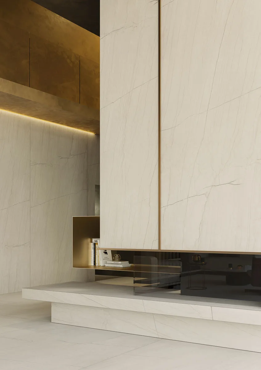 White Macaubas van Infinity Surfaces is een verfijnde porseleinen grootformaat plaat geïnspireerd op Braziliaanse kwartsieten, met een ivoorwitte achtergrond en elegante, longitudinale aders in grijs- en zandtinten. Deze stijlvolle marmerlook geeft een zacht, natuurlijk karakter en een heldere, warme uitstraling die perfect past in moderne en tijdloze interieurs. Dankzij geavanceerde technologie heeft het oppervlak een indrukwekkende diepte en tactiele ervaring, waarbij esthetiek en functionaliteit samenkomen. White Macaubas is ideaal voor werkbladen, vloeren, wanden en meubels en biedt uitzonderlijke duurzaamheid, onderhoudsgemak en een hoogwaardige afwerking voor luxe ruimtes.